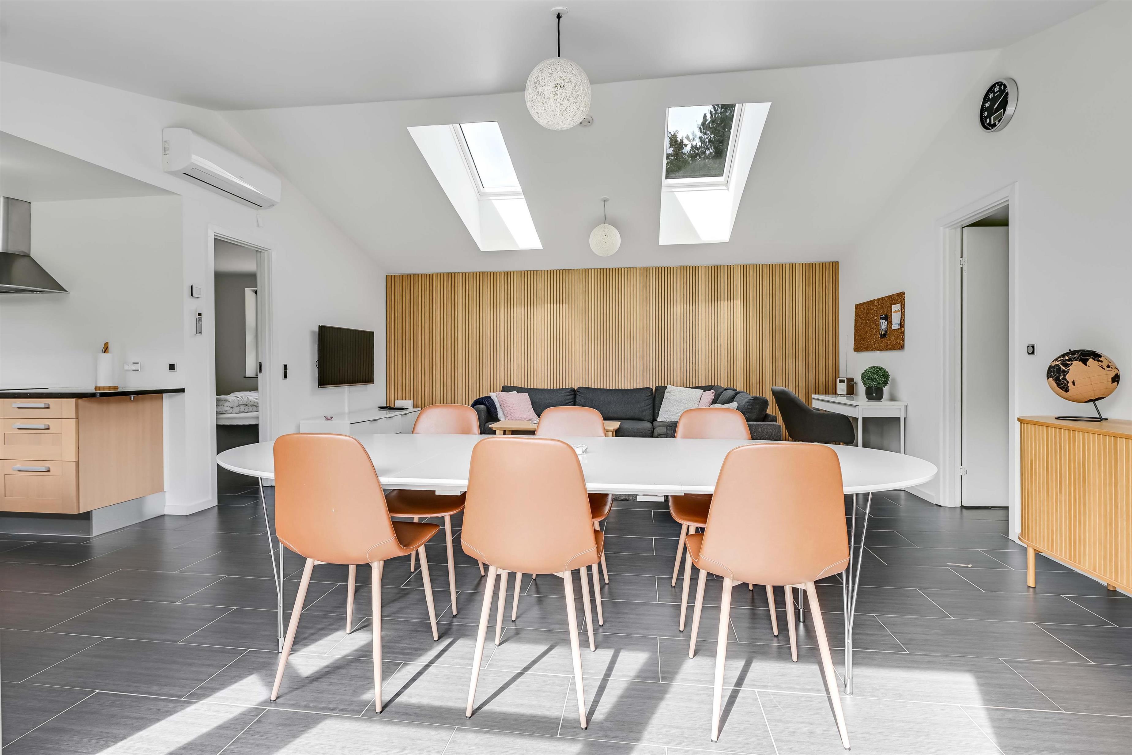 Sommerhuset er indrettet med stilrent design og sans for detaljen, hvilket skaber en varm og hyggelig atmosfære, hvor I straks føler jer hjemme. Huset er udstyret med praktiske bekvemmeligheder som vaskemaskine, tørretumbler og opvaskemaskine, så I kan nyde ferien uden at bekymre jer om dagligdags gøremål.