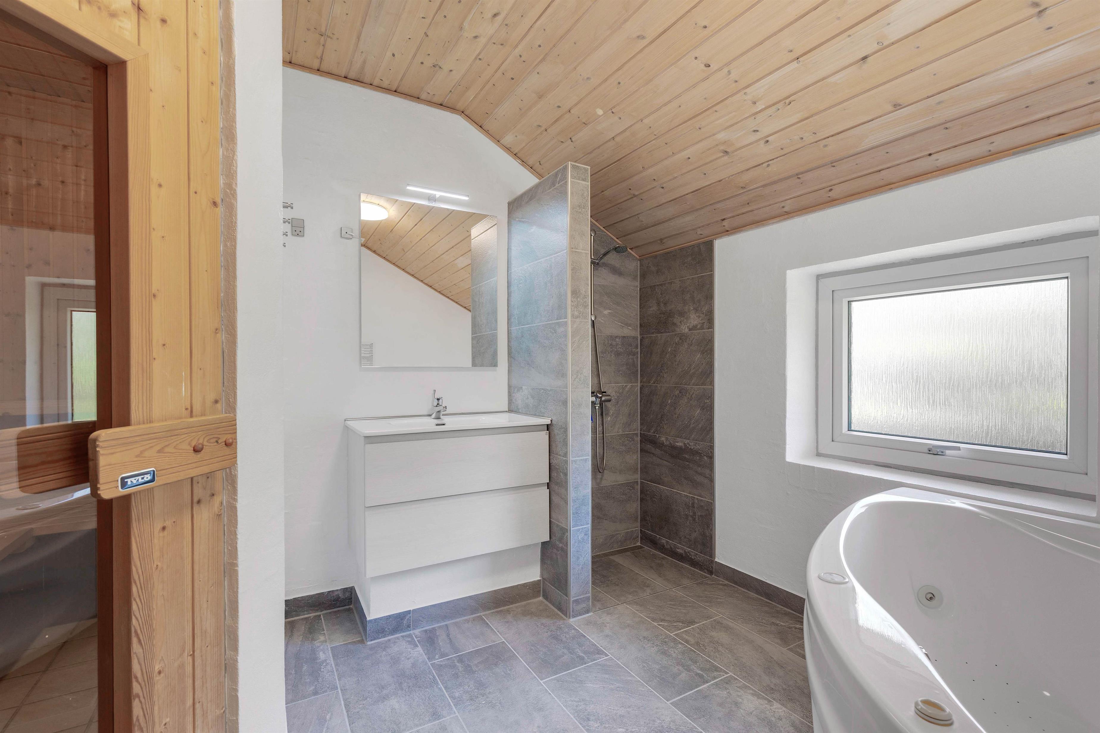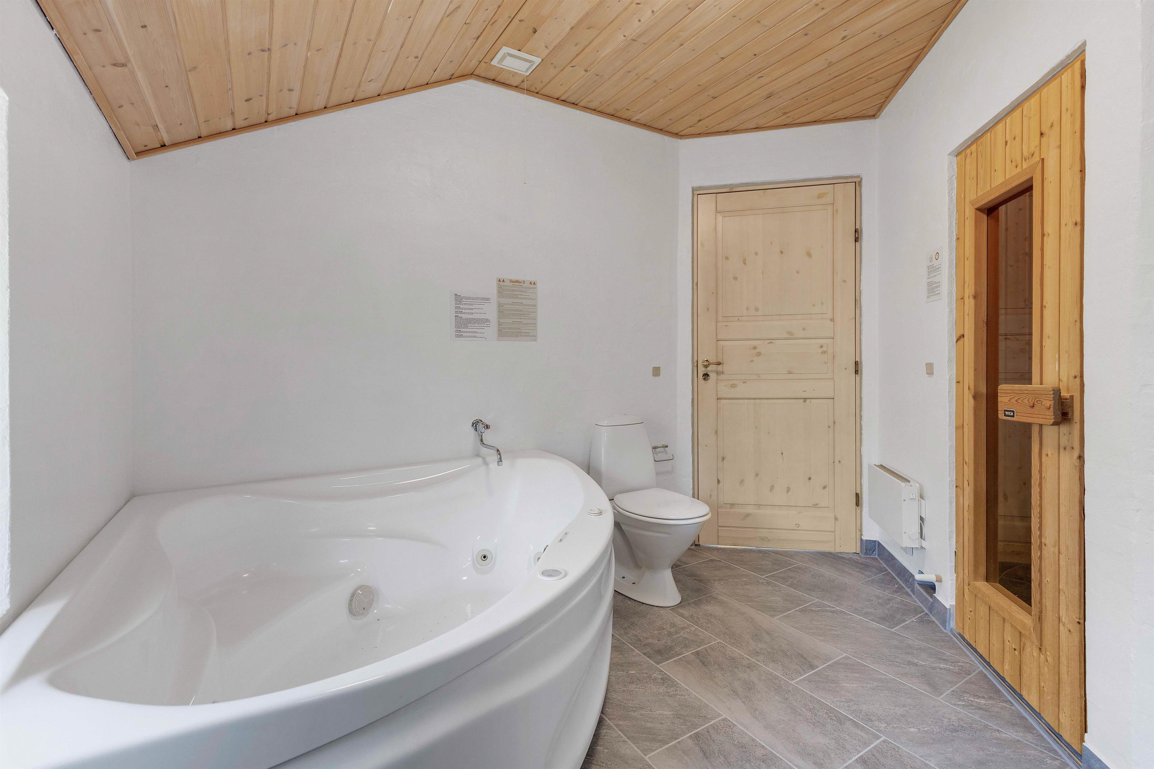 Huset rummer 3 gode soveværelser, der giver fleksible sovepladser for op til 7 gæster, hvilket gør det perfekt til alle gæsterne. Med 2 badeværelser, begge udstyret med gulvvarme, kan I starte dagen på den bedst mulige måde. For en ekstra touch af luksus tilbyder det ene badeværelse en sauna og tømmespa, perfekt til at koble af fra hverdagens stress og nyde roen.