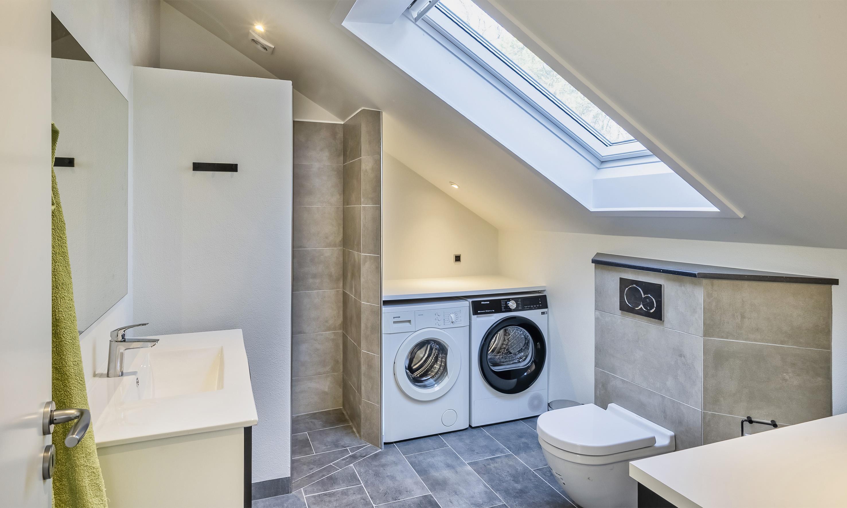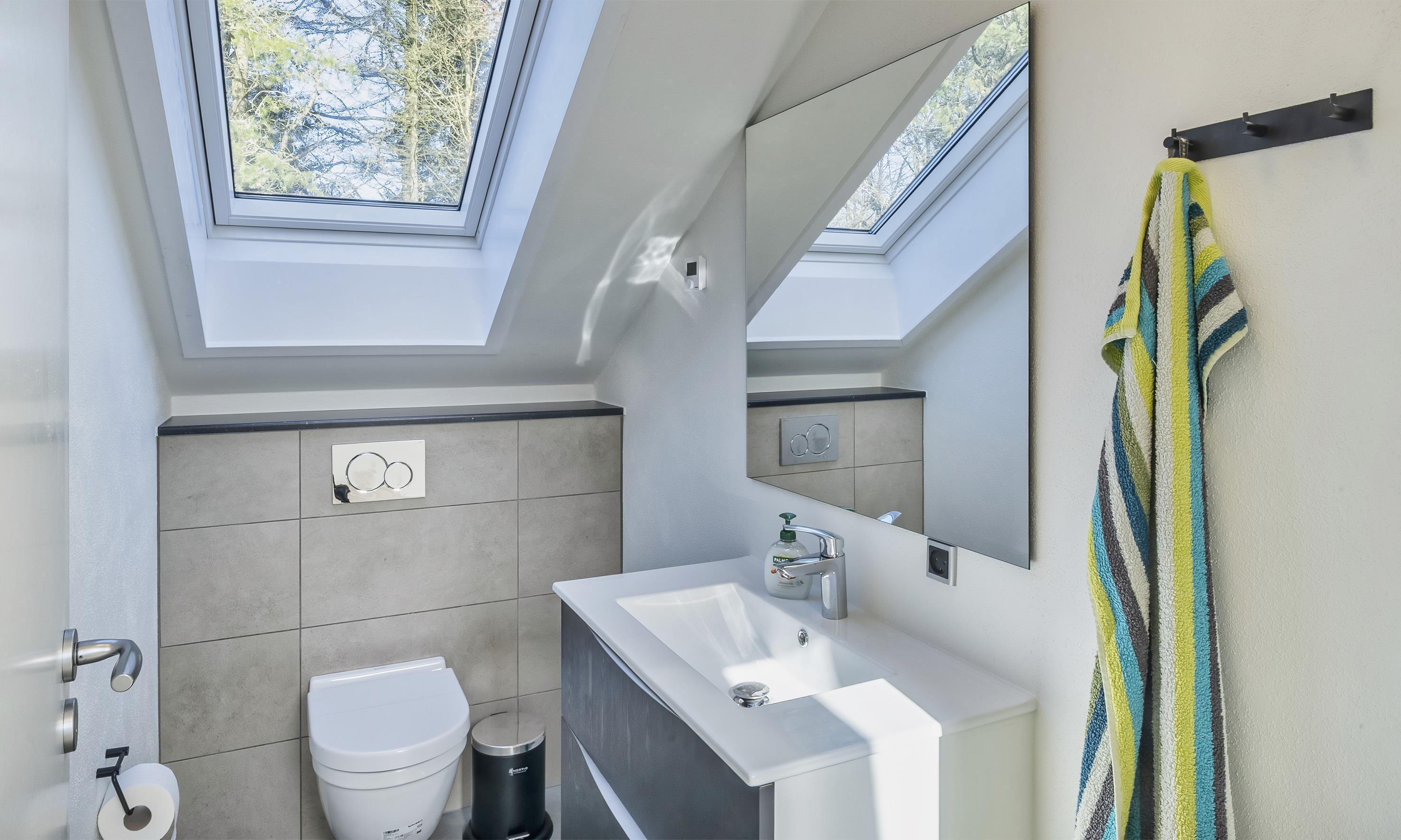 Bad med toilet, bruser og vask
