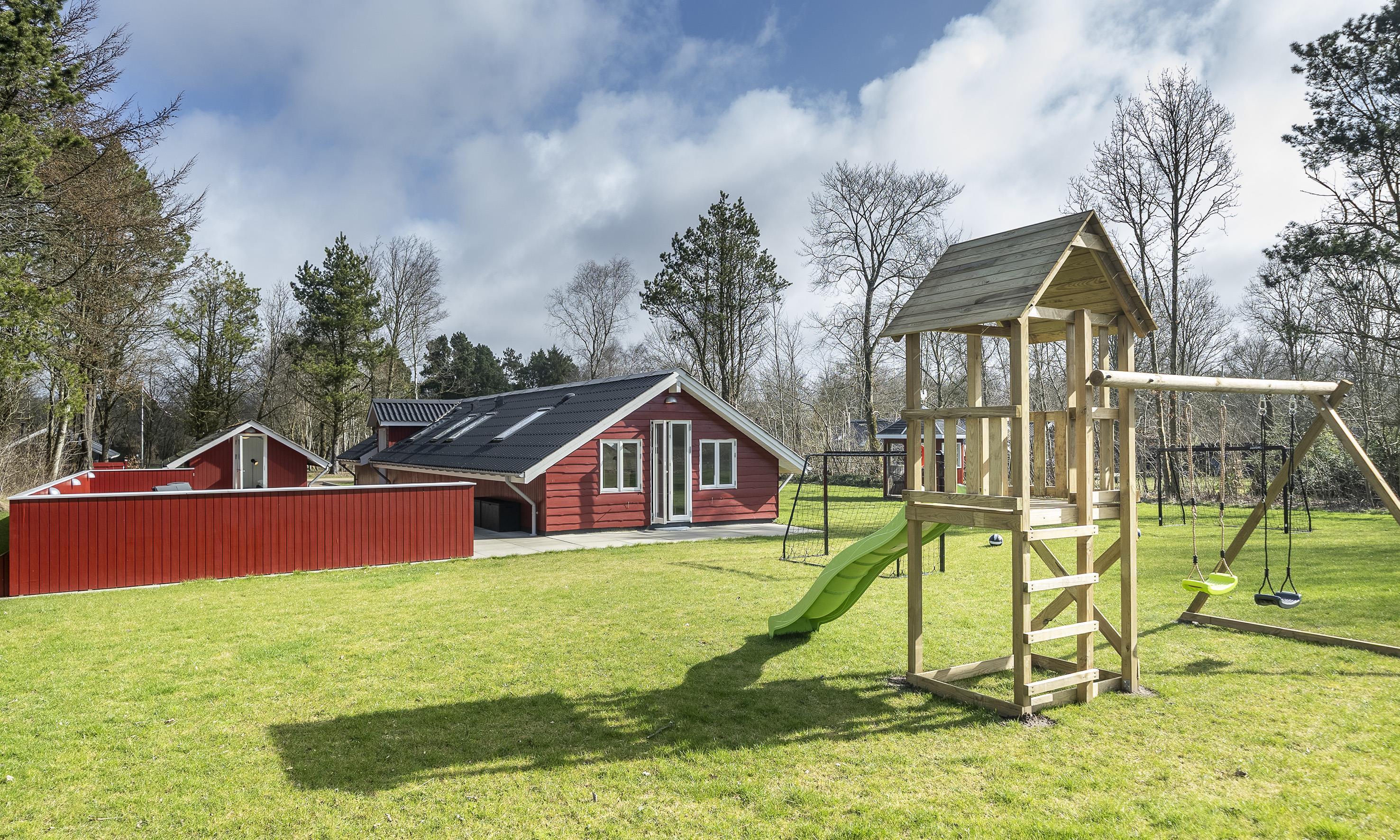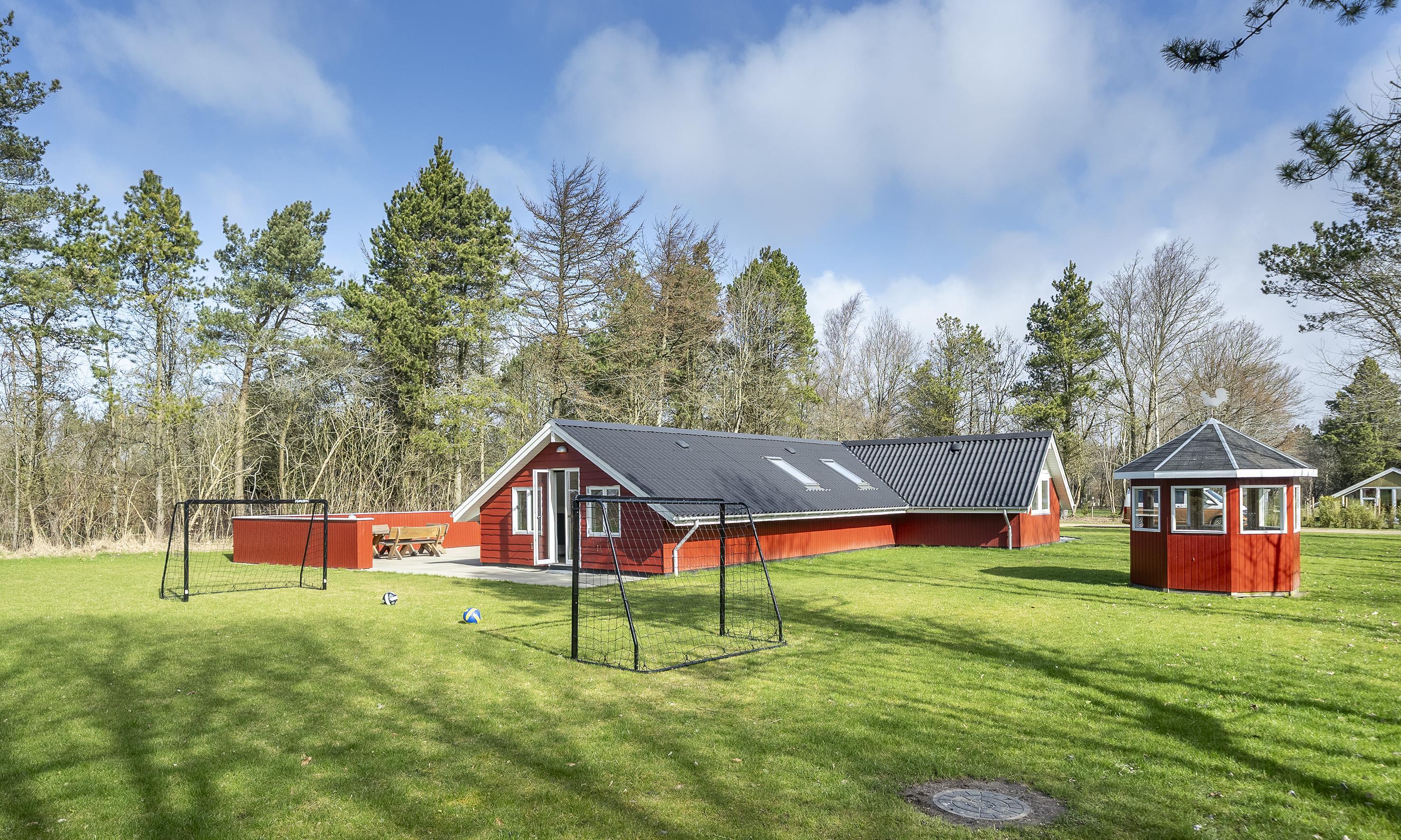 Glæd jer til at holde ferie i dette hyggelige sommerhus med legetårn, fodboldmål og adgang til badeland.