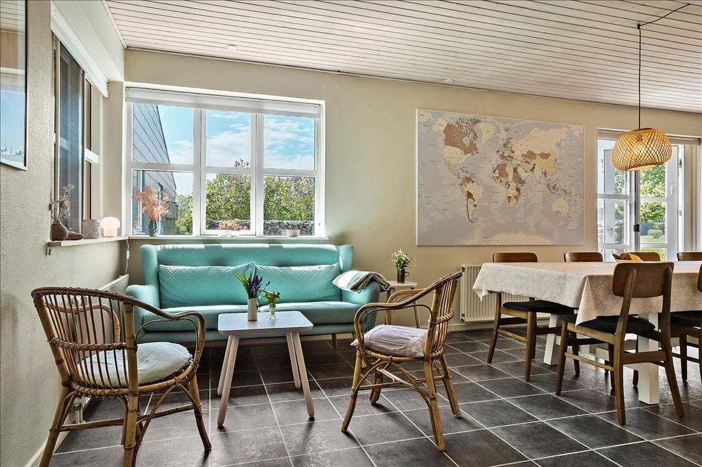 Sommerhus i Juelsminde strand og by, Østjylland, med plads til 8 voksne og 2 børn. Der er en hyggelig indretning, og du finder desuden vaskemaskine, opvaskemaskine og tørretumbler i boligen.