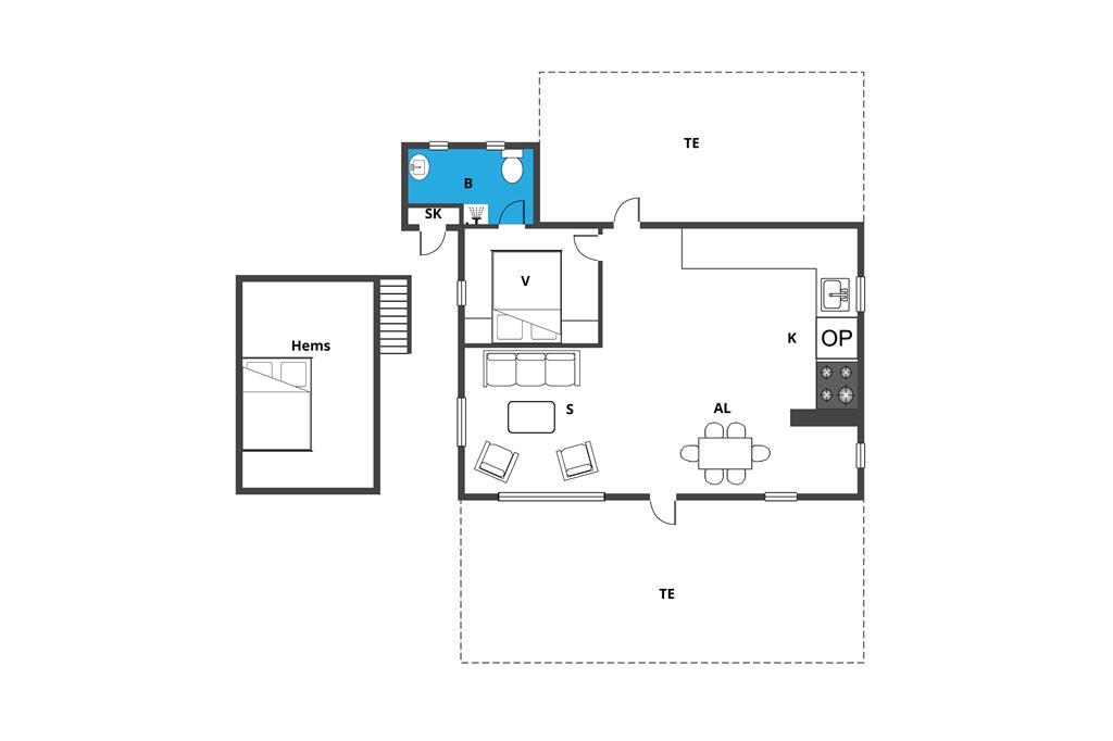 Med denne beliggenhed får I en unik mulighed for at bo få meter fra strandkanten, hvor I kan nyde havets bølger fra jeres egen terrasse. Rundt om sommerhuset findes der flere gode terrasser med havemøbler, hvor I kan nyde hinanden og den danske sommer.