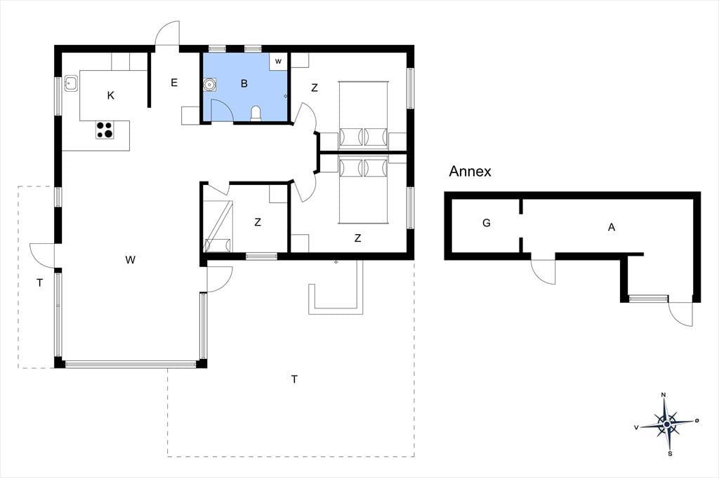 Sommerhuset er indrettet med entré hvor der er mulighed for at hænge jakken og stille skoene til siden. Fra entreen er der adgang til sommerhusets hjerterum, det lyse køkken-alrum der ligger i åben forbindelse med stuen. Her er der plads til at samle familien til gode måltider, brætspil og afslapning i sofaarrangementet. Herfra er der adgang til husets lækre badeværelse med vaskemaskine og 3 gode værelser med 5 sovepladser i alt.
