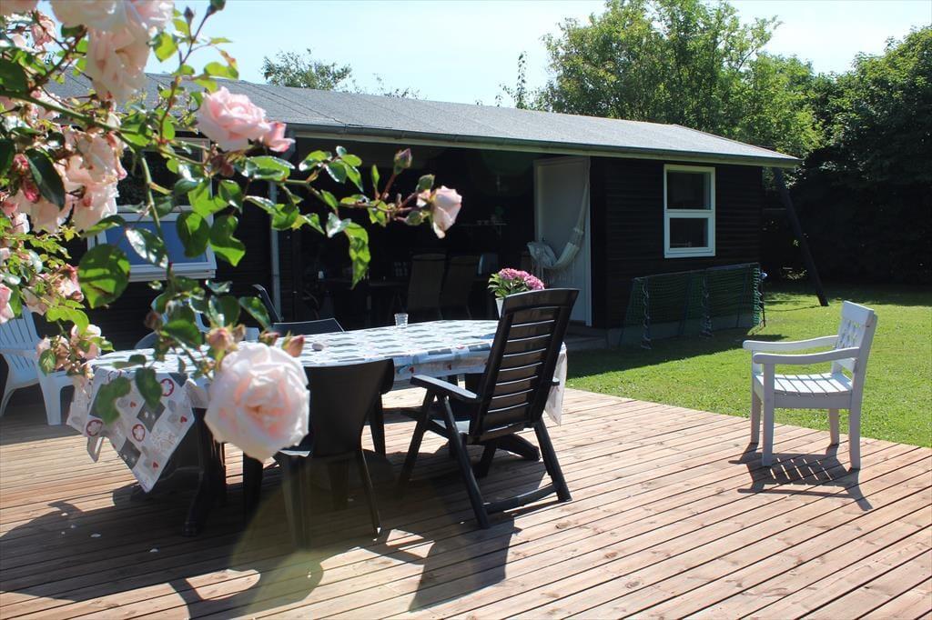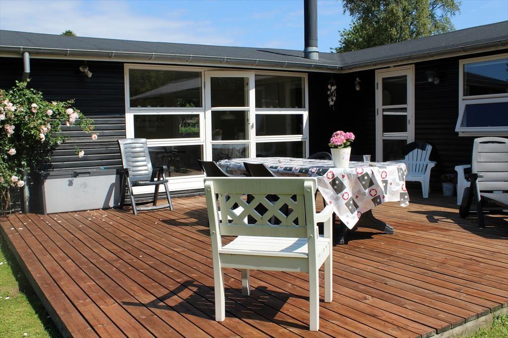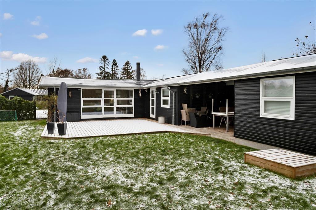 På husets terrasser kan I nyde solen hele dagen, og havemøblerne vil helt sikkert blive flittigt brugt. Kun 200 m væk ligger en dejlig badestrand med en skøn sandbund, så I kan hurtigt stå med fødderne i sandet og nyde vandet.
