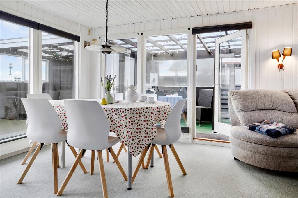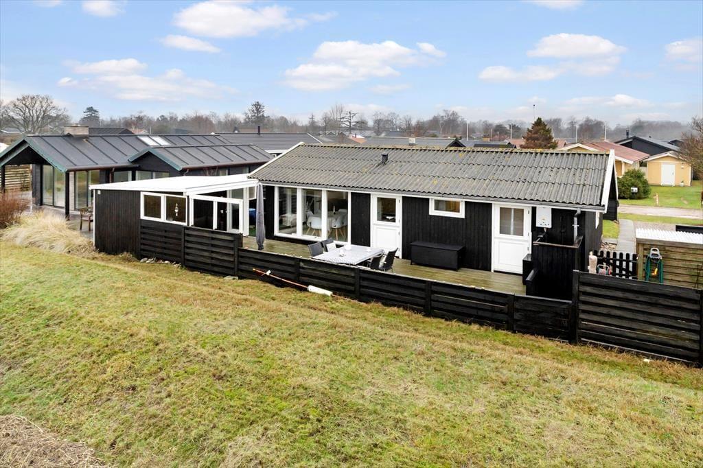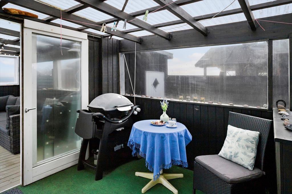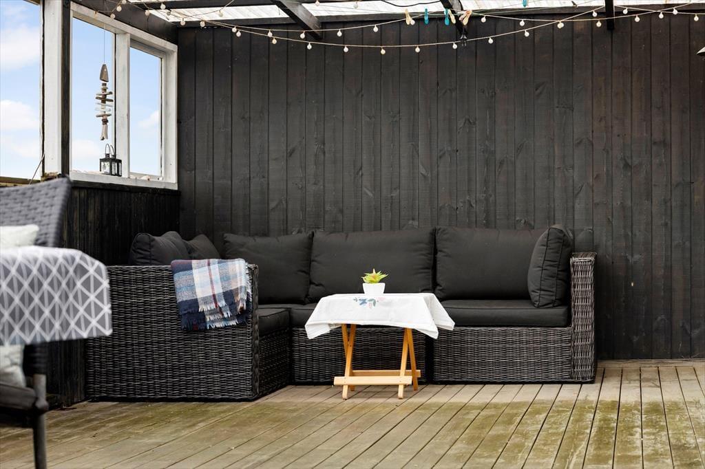 I får mange muligheder for at nyde udelivet ved huset. På husets store træterrasser kan I nyde solen hele dagen i de fine havemøbler. En af terrasserne er overdækket. Der kan altid findes et sted, hvor der er læ og mon ikke en del af opholdets måltider vil blive tilberedt på huset grill.
