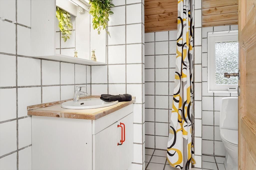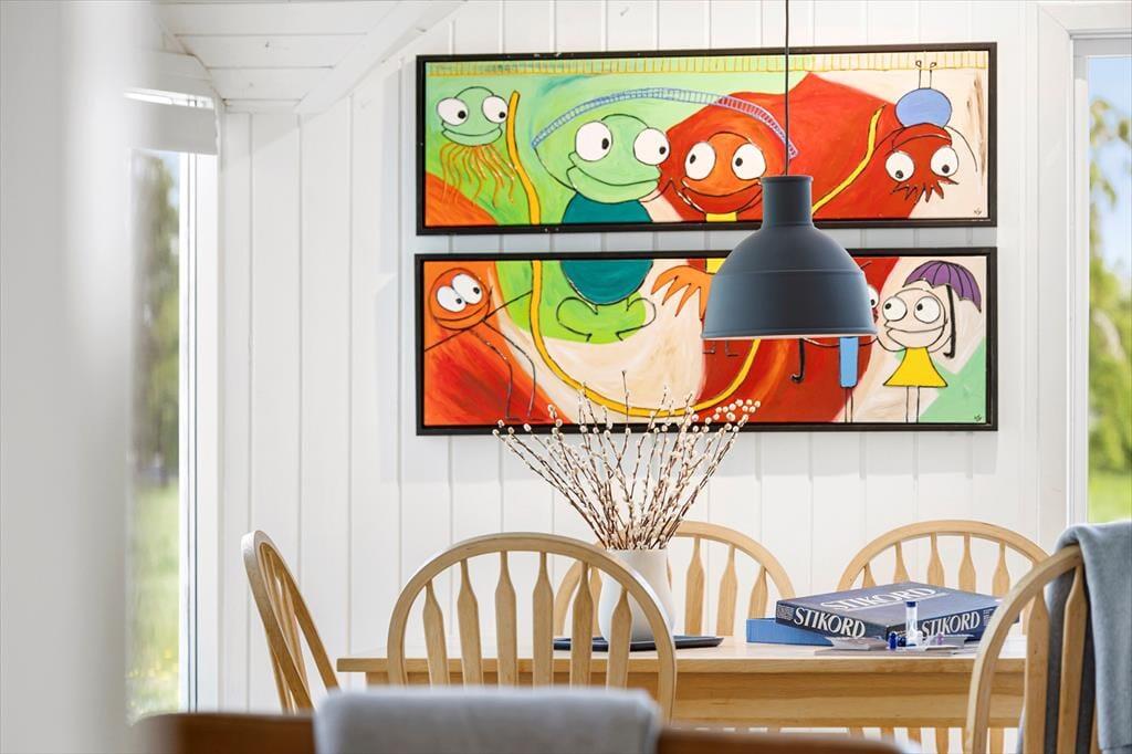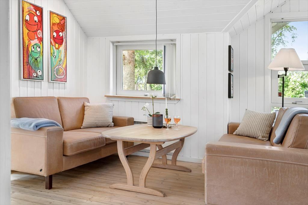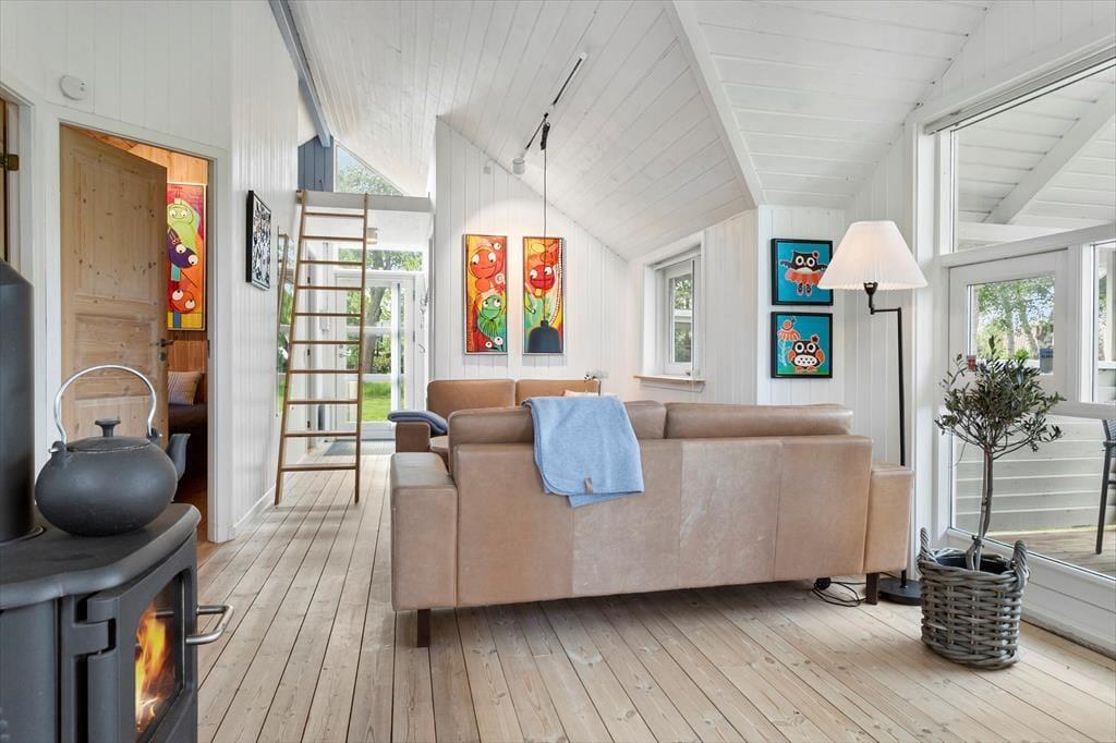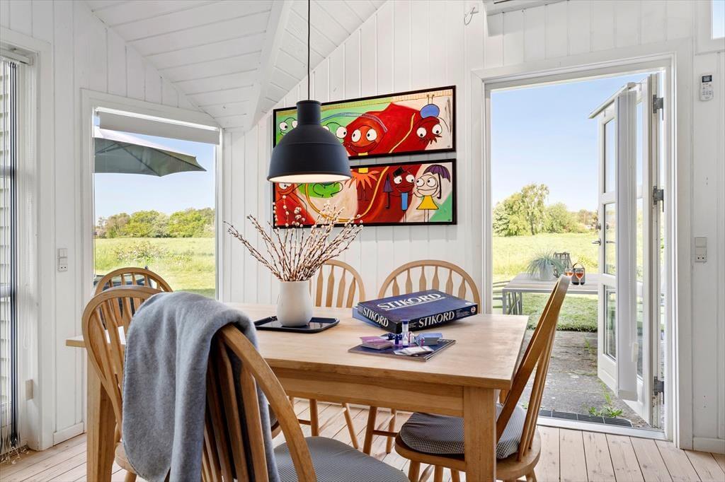 Forestil dig at vågne op til synet af rådyr, der forsigtigt bevæger sig hen over den åbne grund foran den hyggelige ferieoase. Dette sommerhus oser af charme og hygge. Når morgensolen skinner gennem de store vinduer i gavlen, fyldes hele huset med et varmt og indbydende lys, der skaber en særlig atmosfære. Husets hjerte er det store alrum, hvor køkken, spisehjørne og sofahjørne smelter sammen og skaber en skøn stemning. Her kan familien samles omkring spisebordet for at spille spil, dele grin og historier, eller blot nyde hinandens selskab og samtaler om livets små og store oplevelser. Her er plads til ro, fred og en pause fra hverdagen, hvor du kan være til stede og nyde tiden sammen. Og når behovet for lidt alenetid melder sig, kan du trække dig tilbage med en god bog eller strikketøjet foran den knitrende brændeovn, som spreder varme og hygge i rummet.