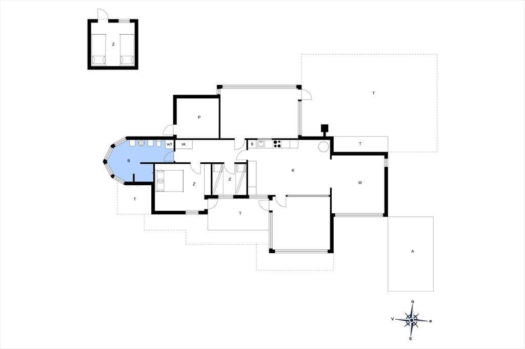 Sommerhuset indeholder en stue, et køkken, to soveværelser og et badeværelse. Derudover er der et fint anneks med to enkeltsenge, så her er der god plads til op til seks personer. På begge sider af huset finder du hyggelige udestuer, der forlænger sommeren og gør det muligt at nyde udelivet helt ind i efteråret.