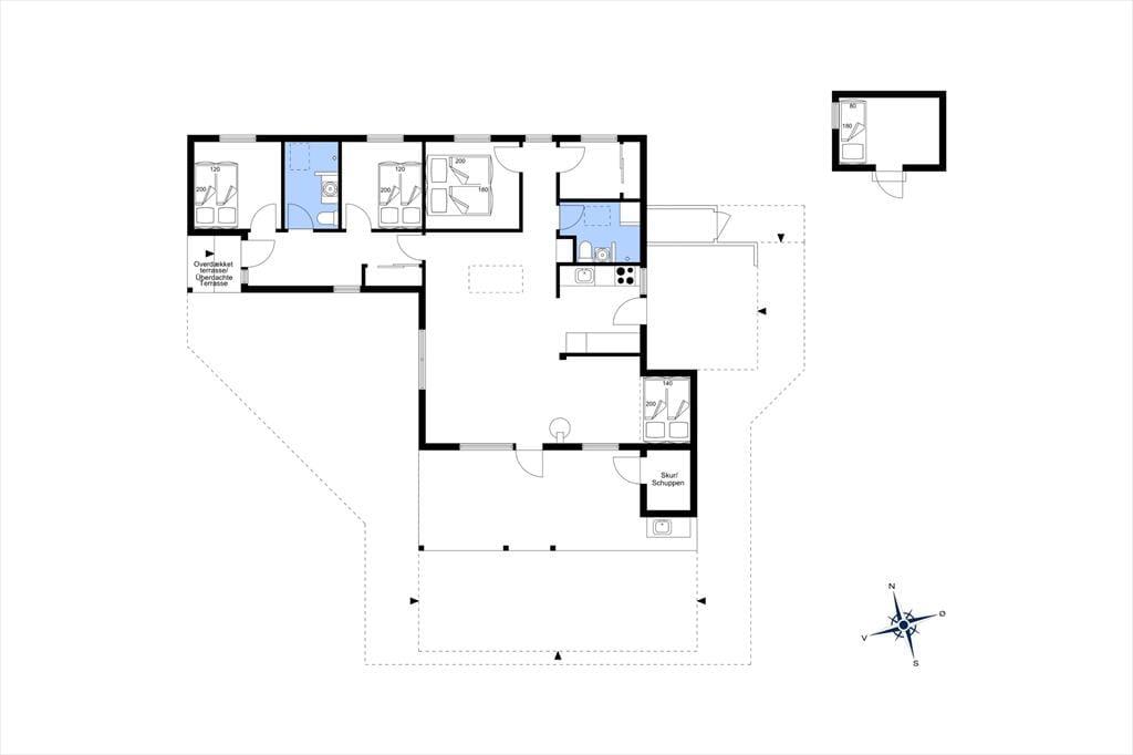 Fra opholdsrummet er der adgang til husets badeværelse samt tre rummelige soveværelser med i alt seks sovepladser. Alle værelser er indrettet med dobbeltsenge, som sikrer en god og behagelig nattesøvn efter en oplevelsesrig dag.