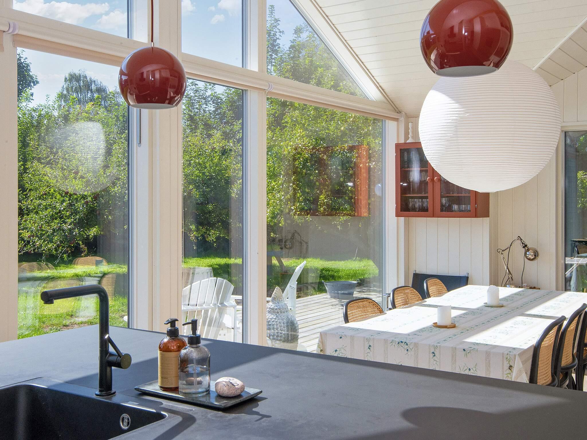 Om aftenen kan I slappe af i den hyggelige stue eller nyde den fredelige beliggenhed på den store terrasse. Terrassen er ideel til sommergrill, og når natten falder på, skaber havelygterne en charmerende og idyllisk atmosfære. Den rummelige have er perfekt til leg og afslapning, omgivet af smukke gamle æbletræer, der bidrager til feriefølelsen. Bemærk, at hvis huset er udstyret med en gasgrill, skal gæsterne medbringe deres egen gas, og hvis der er en kulgrill, skal gæsterne medbringe deres eget kul. Brænde til brændeovnen skal også medbringes.