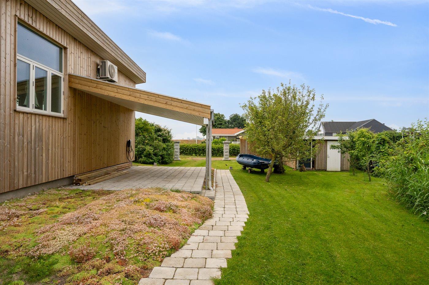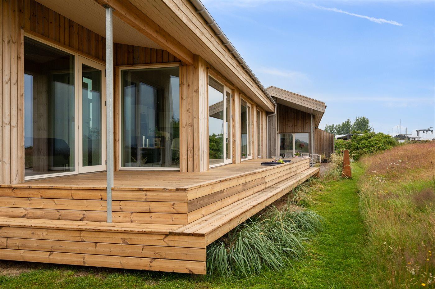 Ferieboligen er bygget i 1978, og en tilbygning med sedumtag samt renovering af eksisterende er foretaget i 2024, således det samlede boligareal i dag er på 168 m2. Huset ligger på en 840 m2 stor naturgrund. Den nye tilbygning med bl.a. køkken/alrum og soveværelse har panoramaudsigt til vandet og med terrassen i Thermo Wood hævet op i stueplan, kan du her sidde og nyde morgenkaffen.