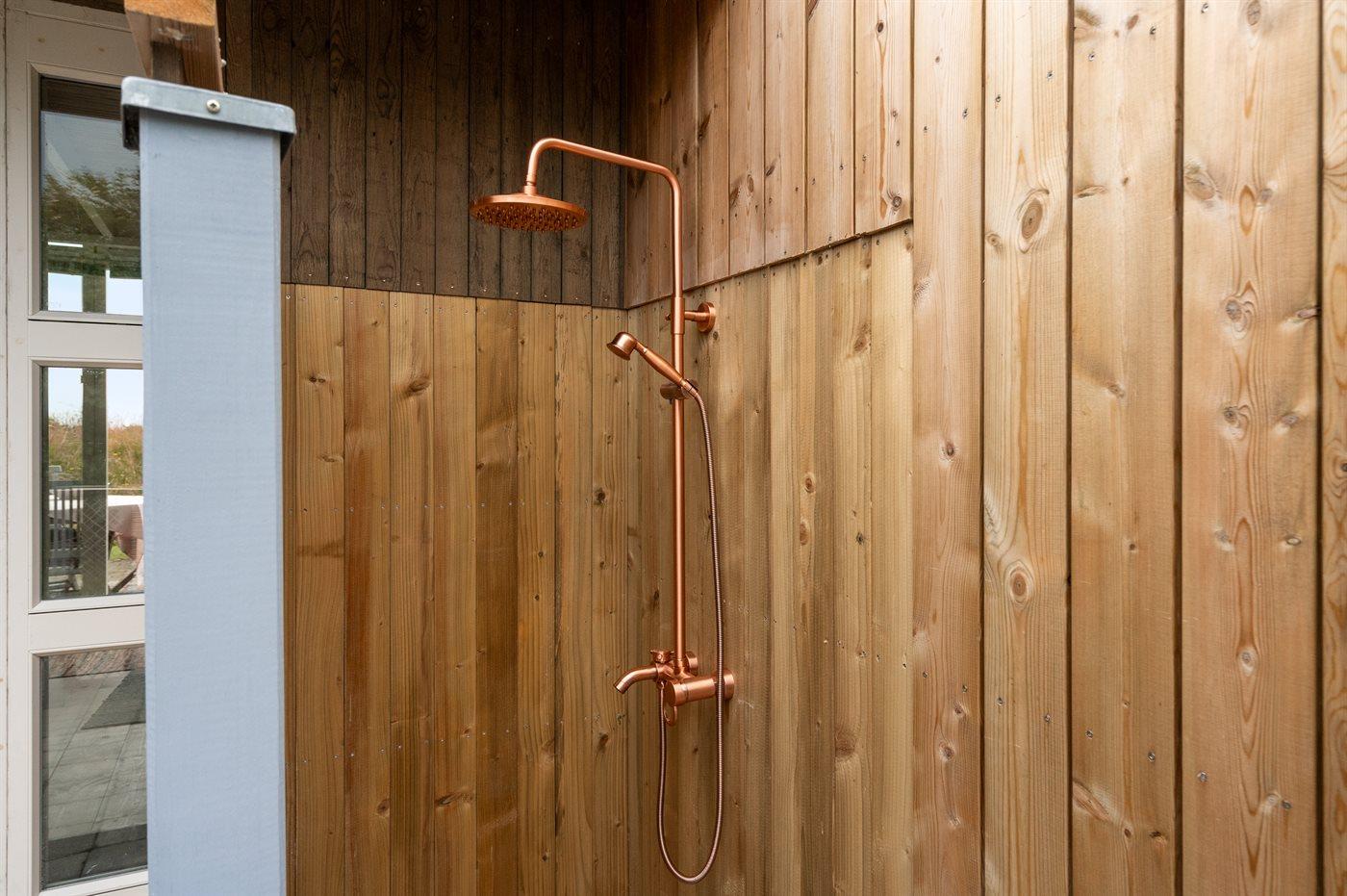 Efter benyttelse af udendørsbruser med koldt og varmt vand er der er mulighed for afslapning i udendørs spa med standvand til 6 personer eller i den indendørs sauna.