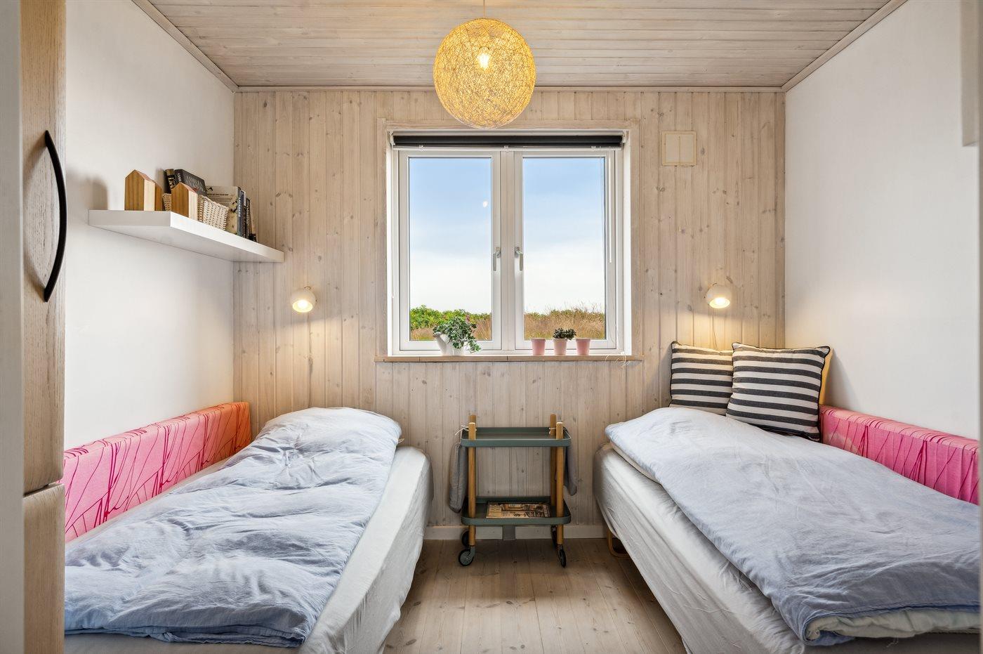 Der er i alt 3 soveværelser og sovepladserne fordeler sig på 2 værelser med dobbeltsenge og1 værelse med 2 enkeltsenge. Desuden findes der 2 sovepladser i sovesofa (dobbelt) i køkken/alrum. Derudover er der 1 stk. barneseng og høj stol.