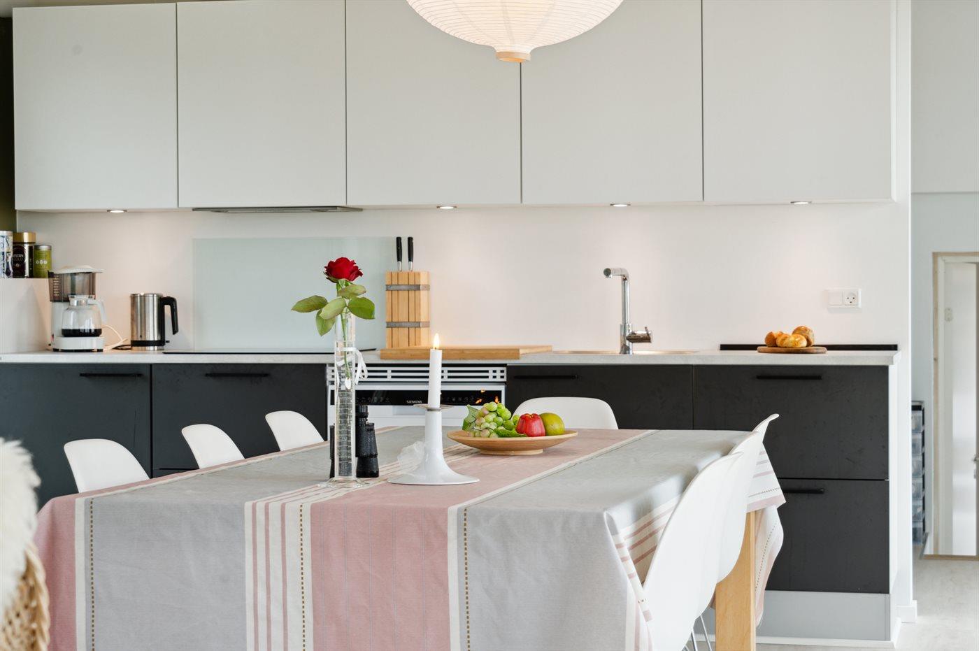 Køkkenet er udstyret med 1 køleskab med frysekapacitet på 30 liter, 4 keramiske kogeplader, varmluftovn, mikrobølgeovn samt opvaskemaskine.