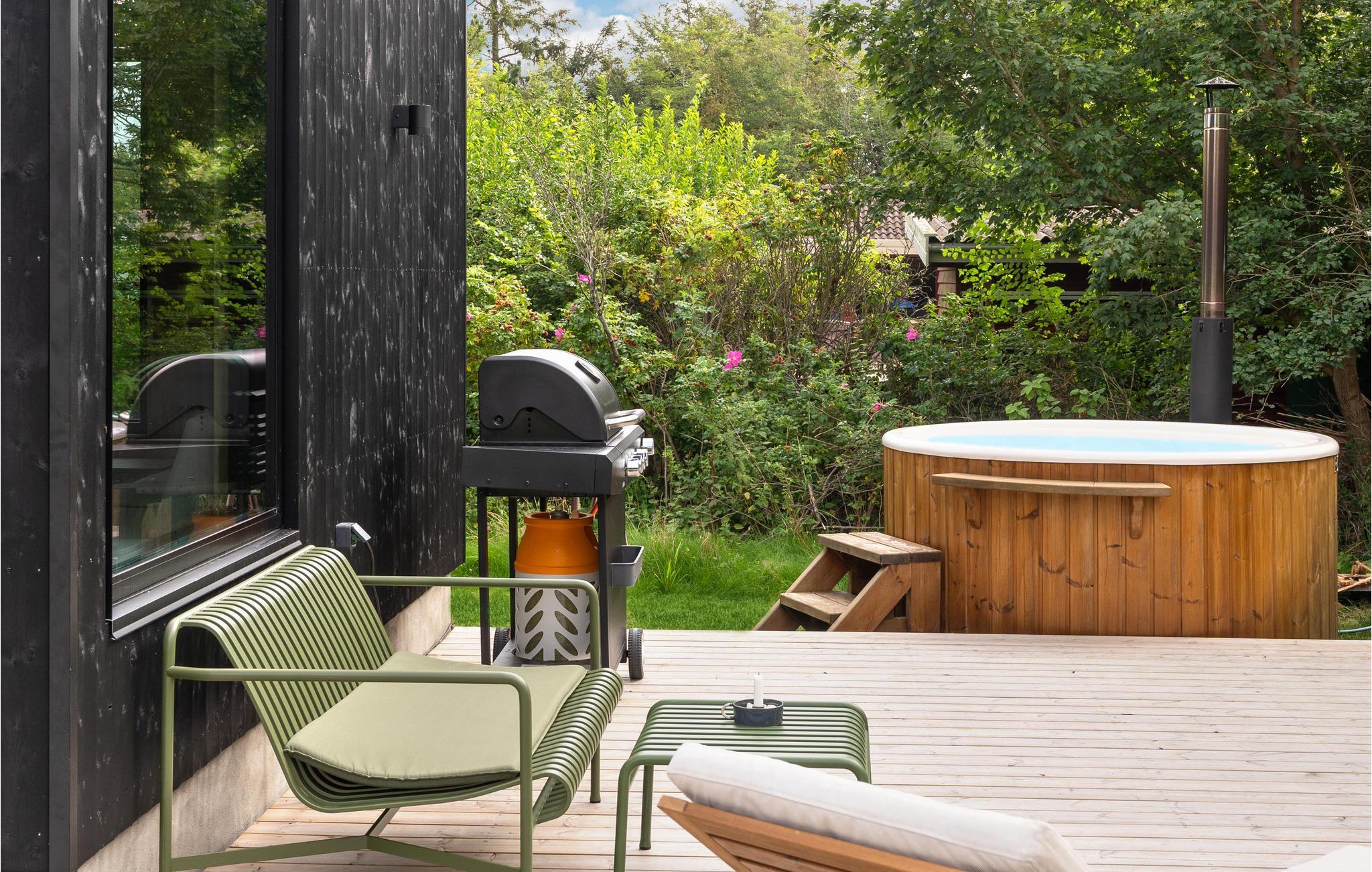 Velkommen til dette stilfuldt indrettede feriehus i skandinavisk stil. Her finder I alt hvad I behøver for at holde en ubekymret ferie. Den rummelige stue er badet i naturligt lys fra de store vinduespartier og vil være samlingsstedet for hele familien. Tilbring mange skønne timer med at lave mad, lege og slappe af. Nyd milde sommeraftener eller solrige morgener på den store træterrasse med en god drink afhængigt af tidspunktet på dagen, og planlæg jeres aktiviteter og udflugter til de kommende dage.
