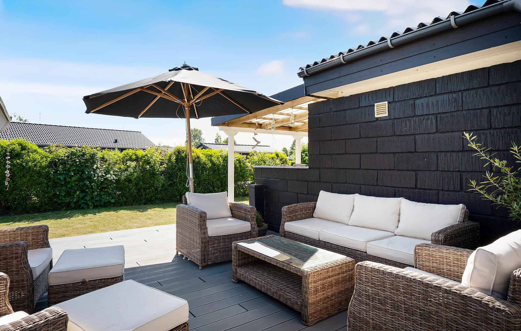 Udeområdet er tilsvarende dejligt. Sæt jer godt til rette på terrassen med en friskbrygget morgenkaffe og nyd udsigten, der går helt ud til vandet. Leg med børnene og spil lidt bold i haven, inden I tager på udflugt.