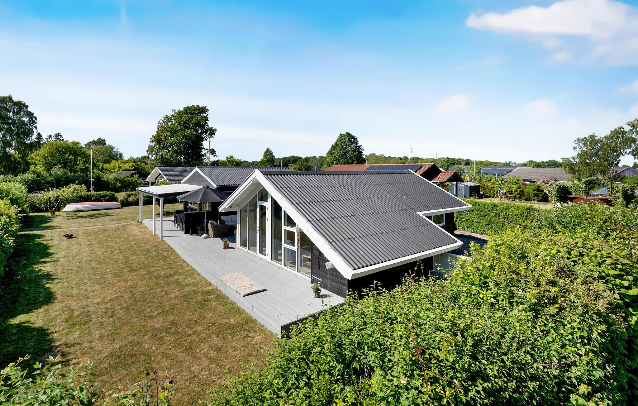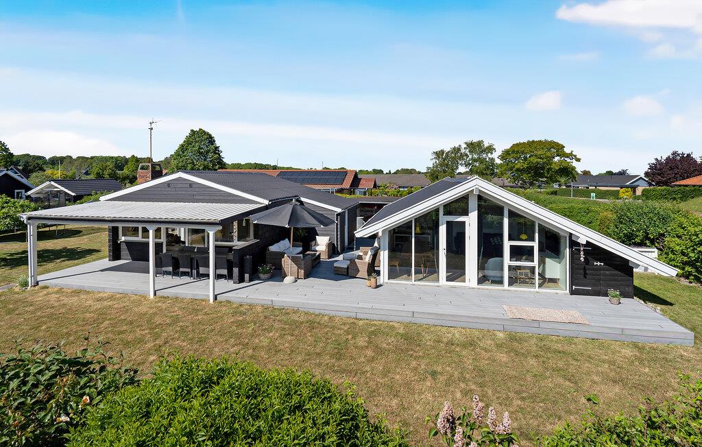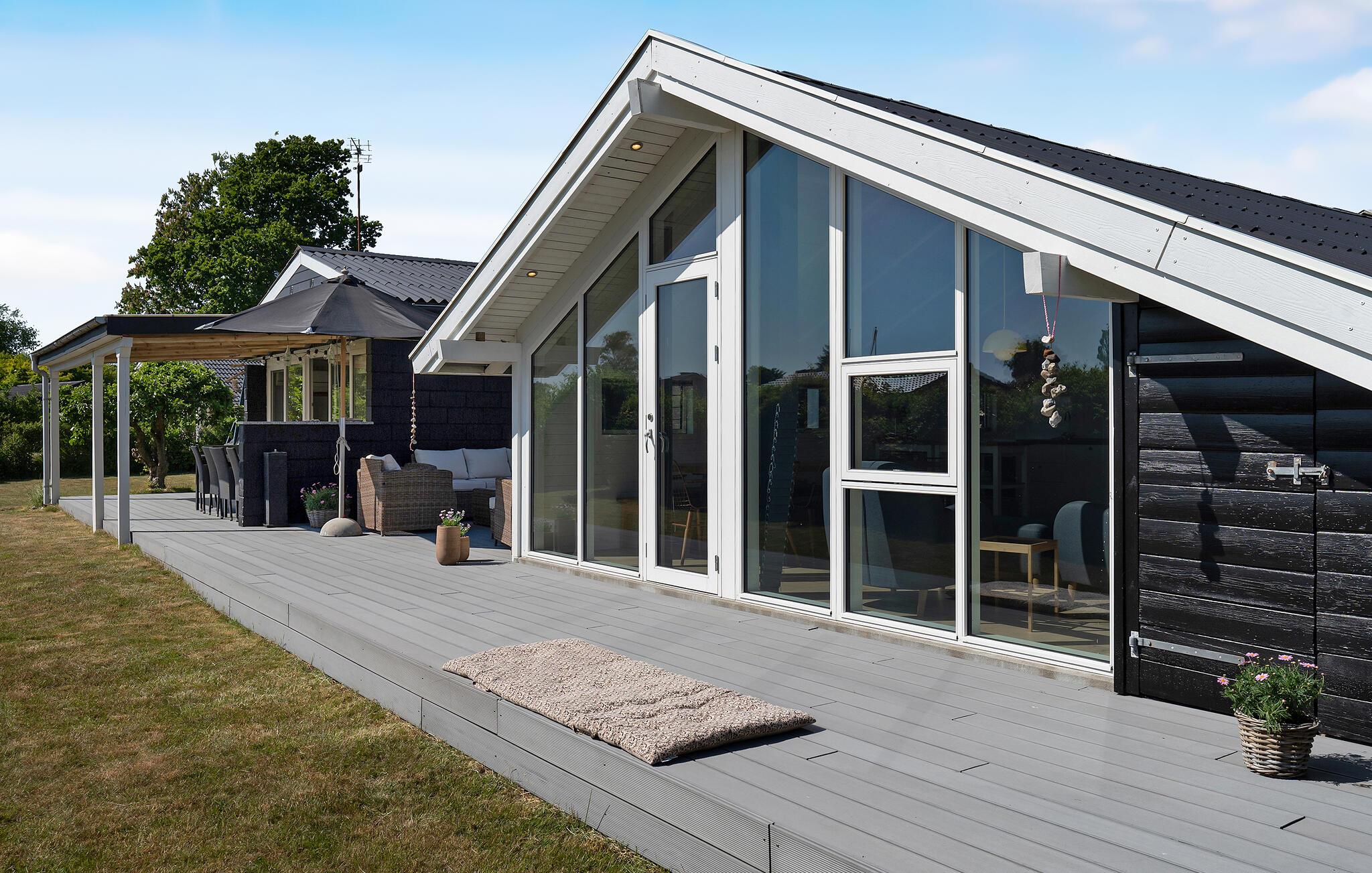 Lækkert feriehus tæt på stranden i Juelsminde med havudsigt og gode faciliteter til en afslappende ferie.