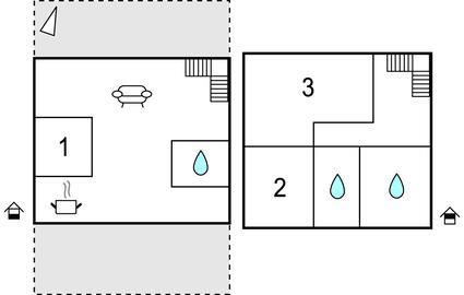 Soveværelse (nr. 1) - 2 Sovepladser. (Enkeltseng(e)).