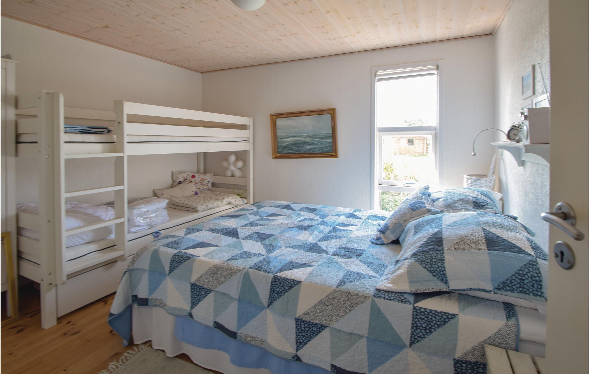 Soveværelse (nr. 1) - 2 Sovepladser. (Dobbeltseng(e)). 1 Soveplads. (Etageseng(e)).