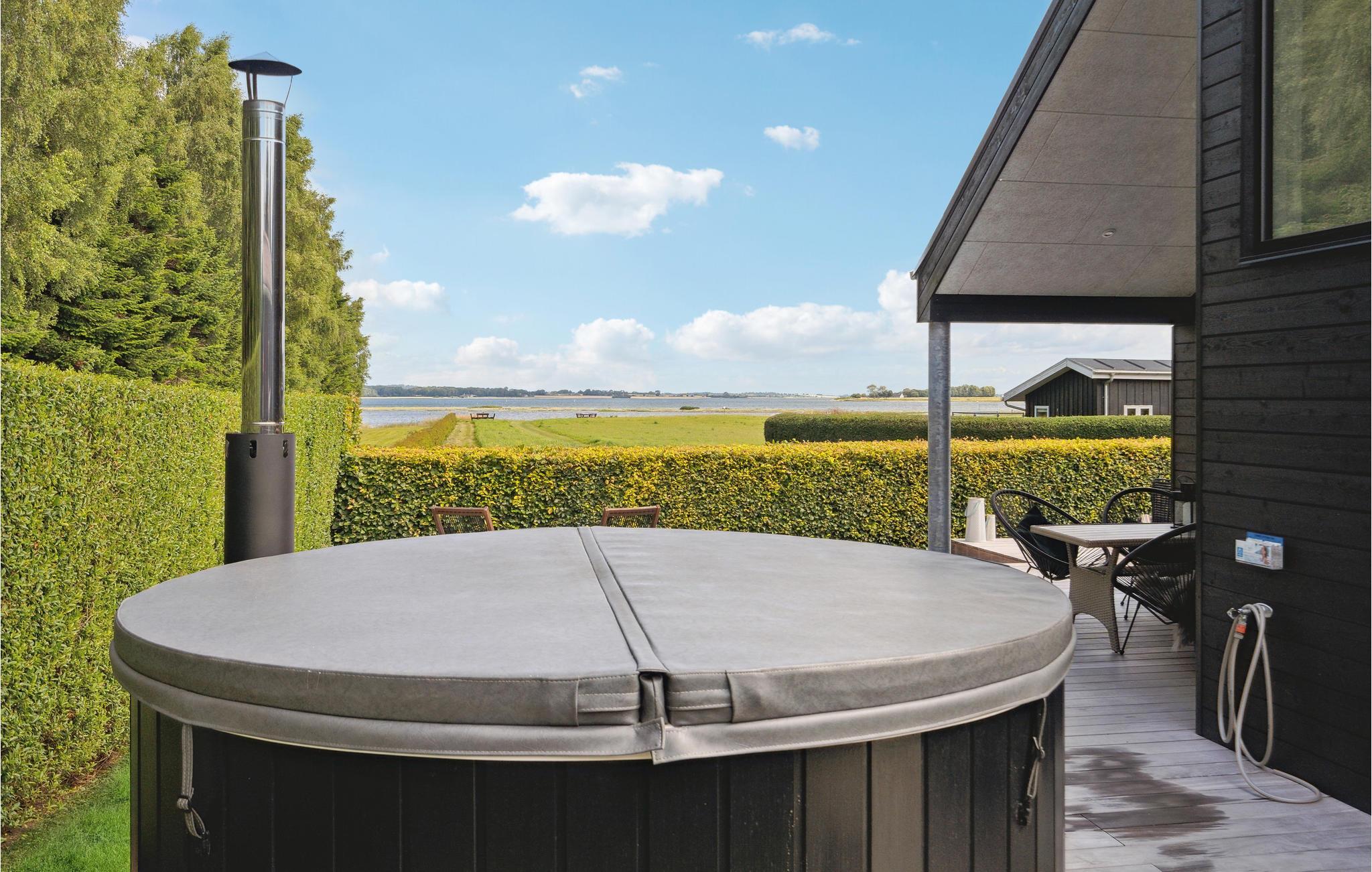 Ejendommen byder på masser af plads til at lege og slappe af. Tag jeres kaffe med udenfor og nyd solen, mens jeres børn boltrer sig. Senere kan I slappe af i det udendørs vildmarksbad.