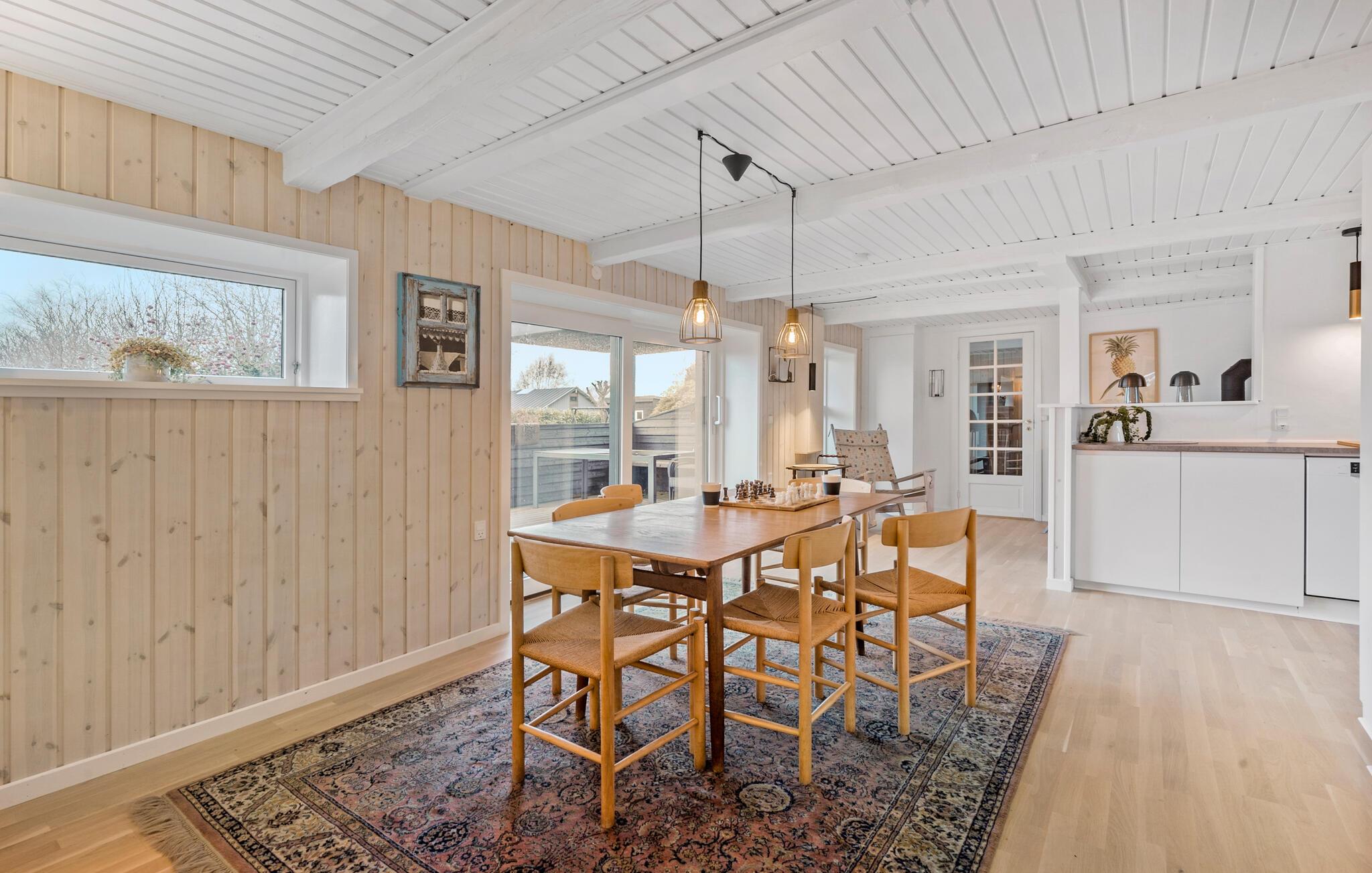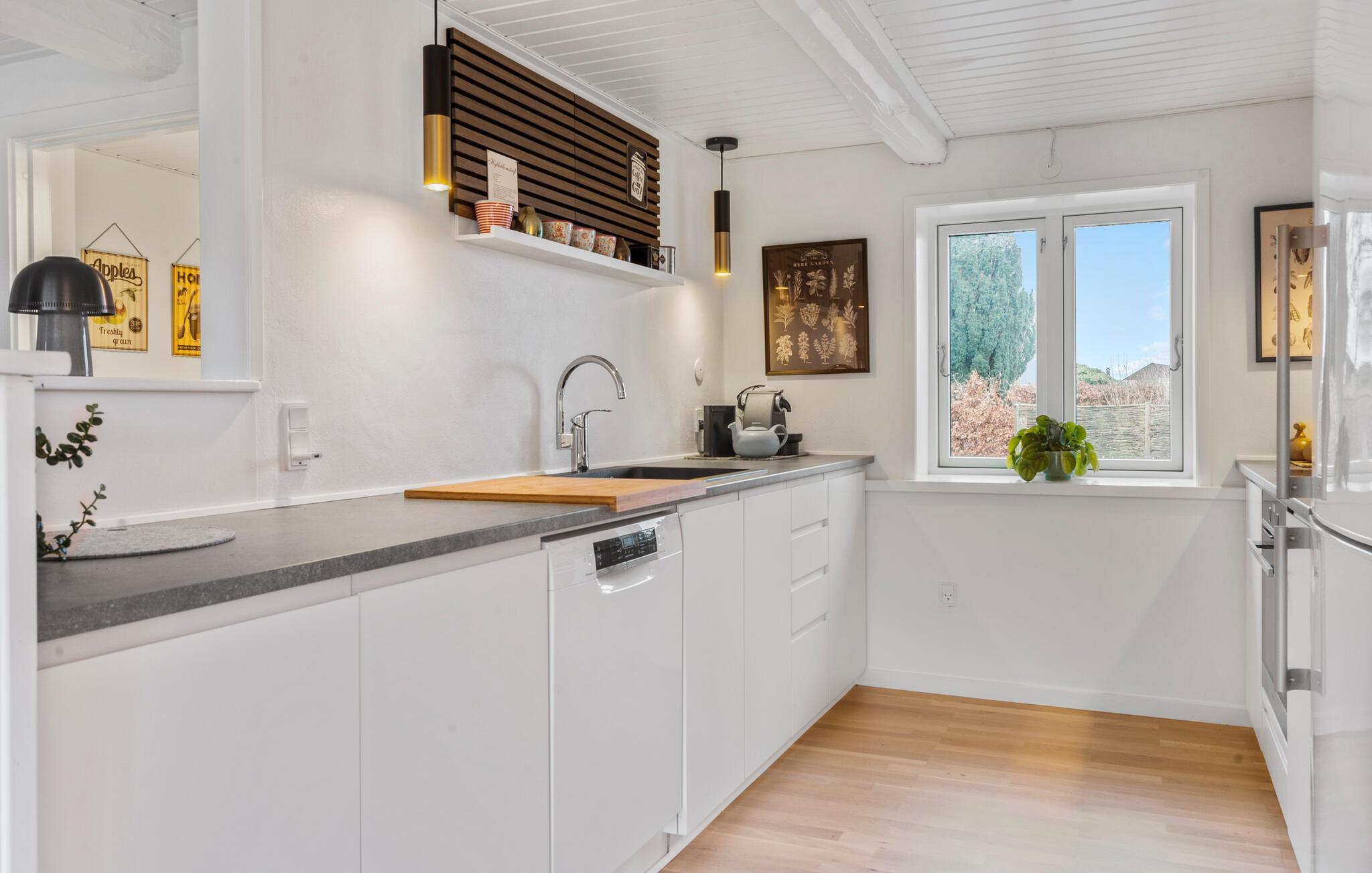 Dette velindrettede feriehus i Juelsminde kombinerer original charme med moderne komfort. Fordelt på to etager tilbyder det jer lyse og indbydende rum, der skaber en varm atmosfære takket være trælofter og vægge. Den hyggelige opholdsstue med brændeovn lægger op til afslappende timer, mens det veludstyrede køkken og spiseplads giver plads til fælles måltider.