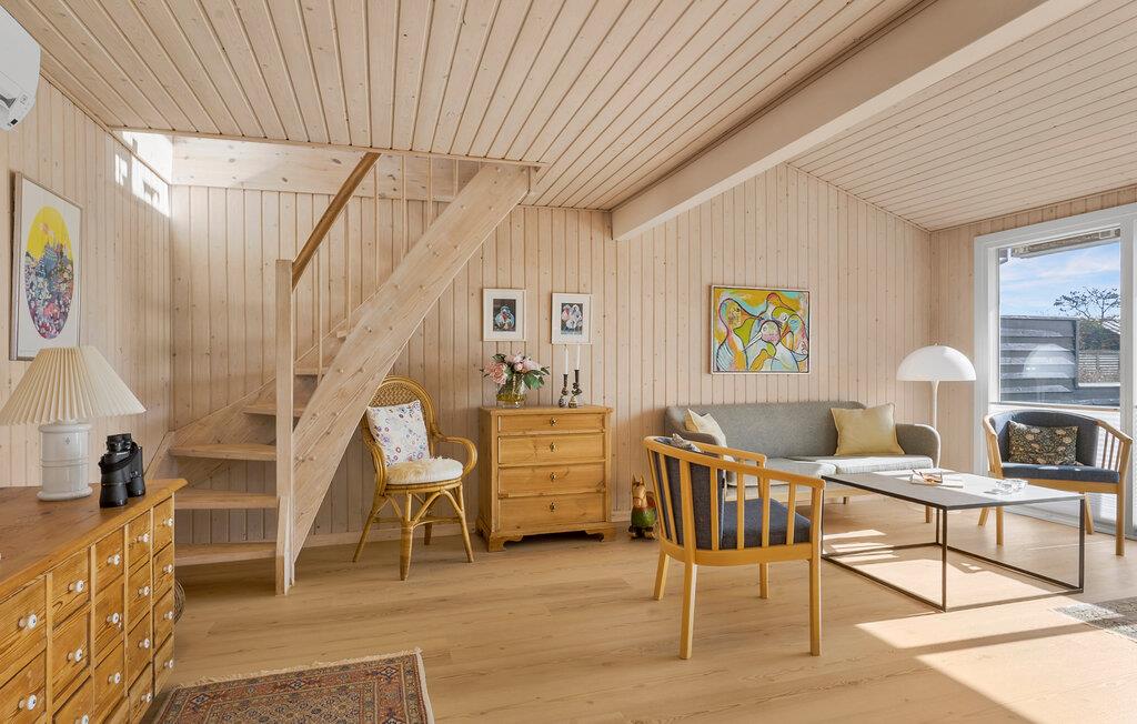 Nyd nogle afslappende dage i jeres sommerhus i Juelsminde, lige på toppen af ??Bjørnsknude. Oplev ægte skandinavisk hygge i jeres hjem. Opholdsstuen med højt til loftet, store vinduespartier og masser af træ byder på en hyggelig opholdsstemning. Slå jer ned i den komfortable sofa og slap af med en god bog eller en hyggelig filmaften. Den åbne spiseplads med sine moderne møbler lægger op til hyggestunder, mens det stilrene køkken, der også har en træstil, inspirerer til at lave mad sammen.