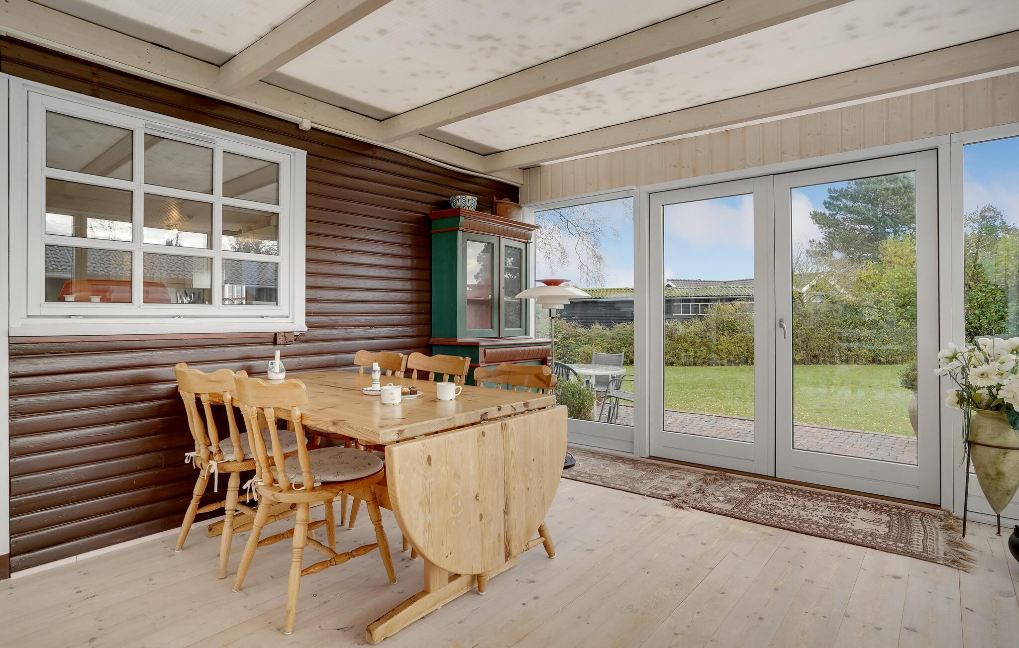 Dette indbydende sommerhus har en hyggelig opholdsstue og en praktisk og stemningsfuld udestue. Nyd morgenen med en solid morgenmad, inden I begynder dagene. Den åbne stue og spisestue med brændeovn skaber en varm atmosfære til hyggelige aftener. Find jer godt til rette i sofahjørnet og tilbered lækre retter i køkkenet. I kan også servere dagens måltider i udestuen, som lover en afslappet atmosfære året rundt.