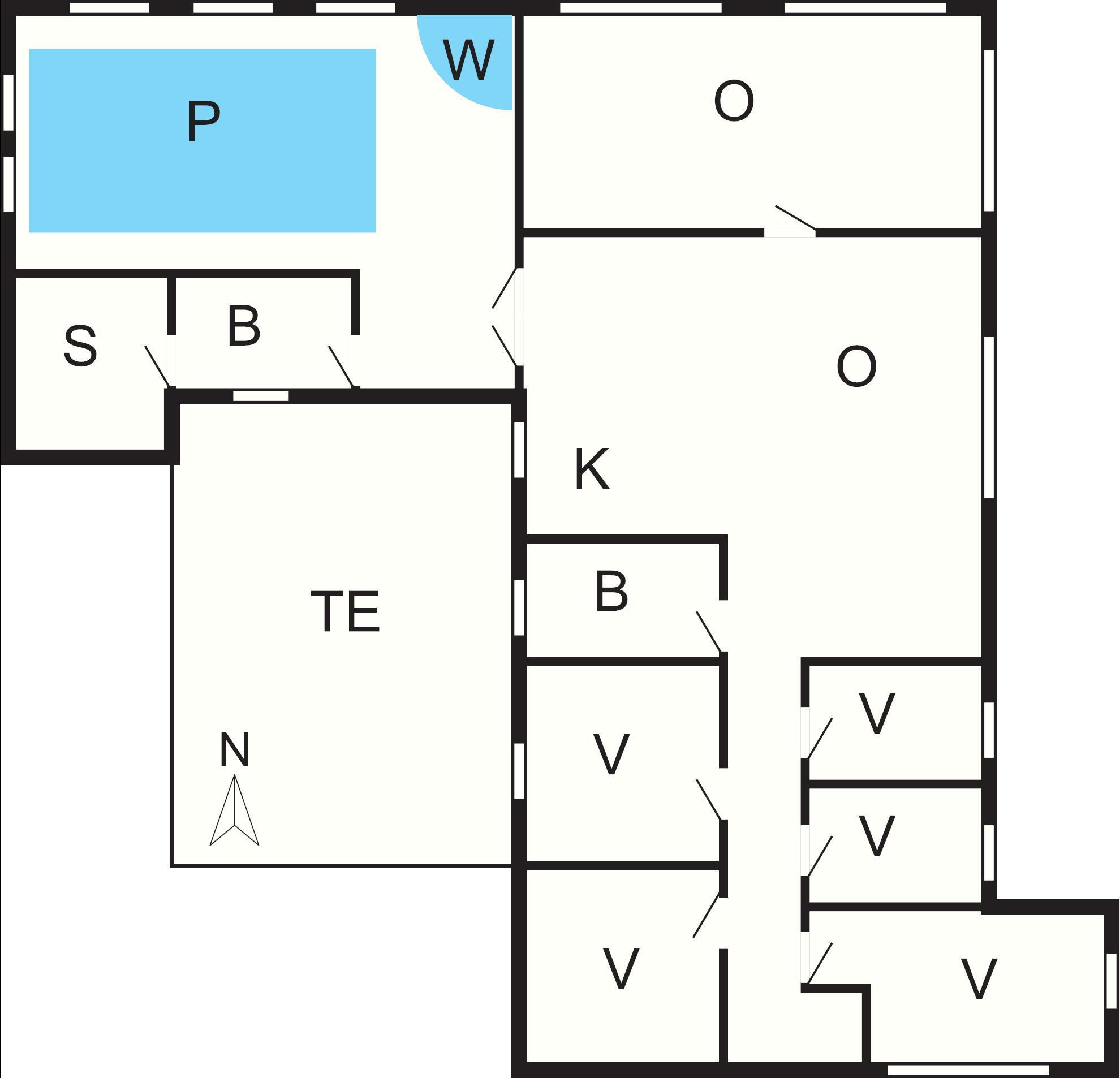 Husets pool- og spa-rum er renoveret i 2024 og indeholder 18 m2 swimmingpool, 2 personers spa og sauna med plads til 8 personer samt husets ene badeværelse.