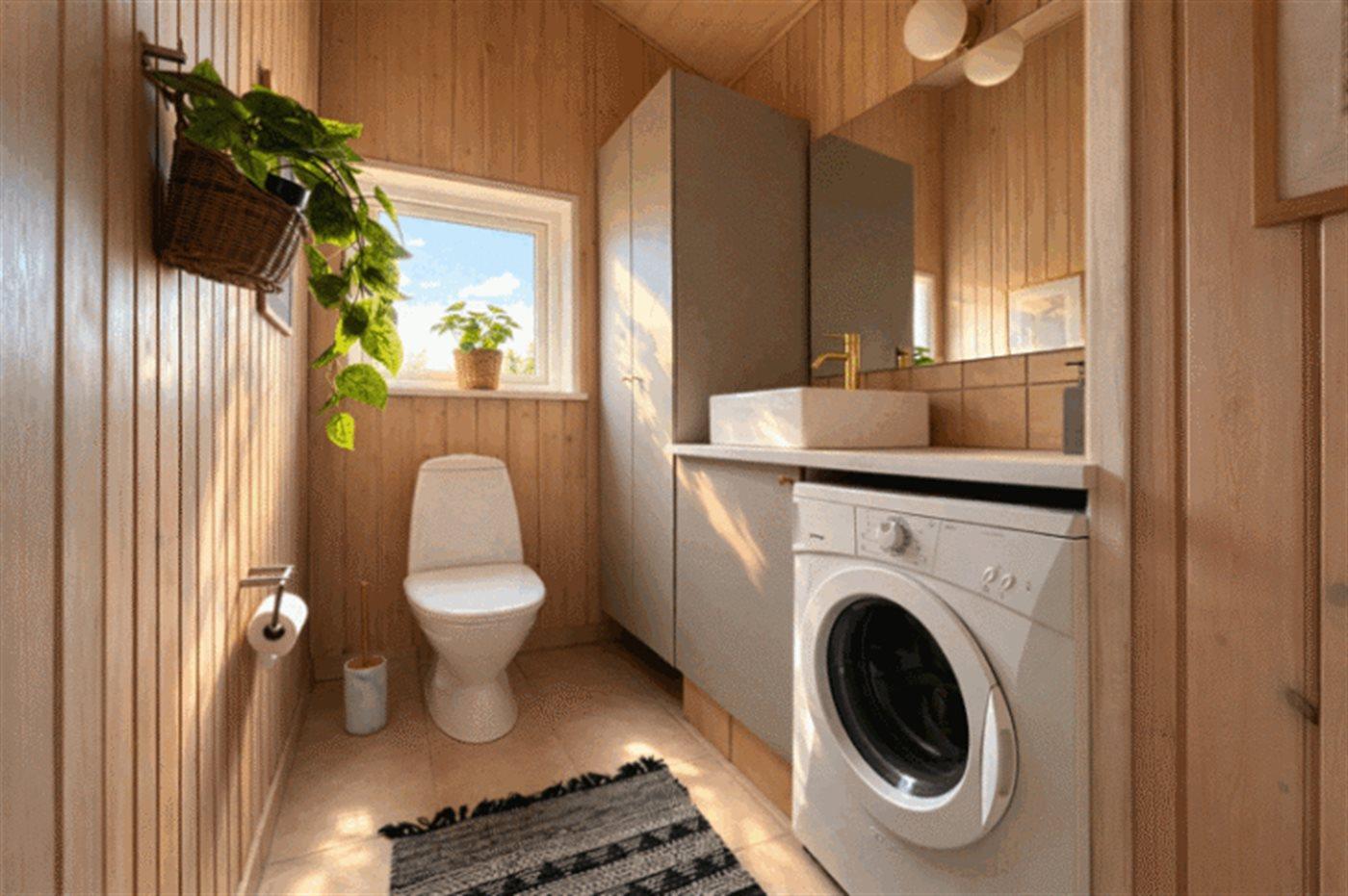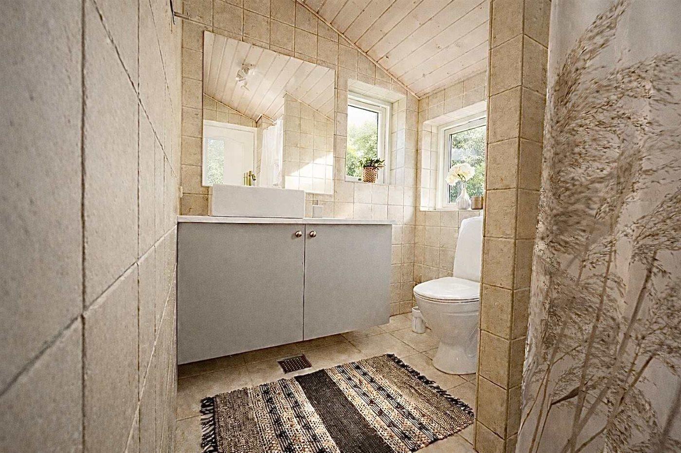 Der er 1 badeværelse med bruseniche og 2 toiletter, heraf 1 gæstetoilet. Der er gulvvarme på 1 badeværelse. Der er gulvvarme på gæstetoilettet.