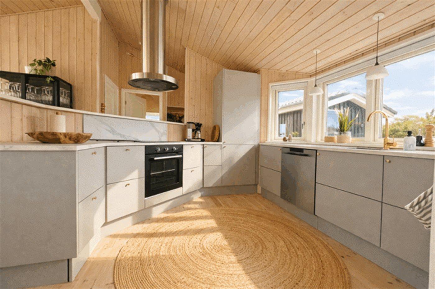 Køkkenet er udstyret med 1 køleskab. Der er 4 induktionskogeplader, varmluftovn, mikrobølgeovn samt opvaskemaskine.
