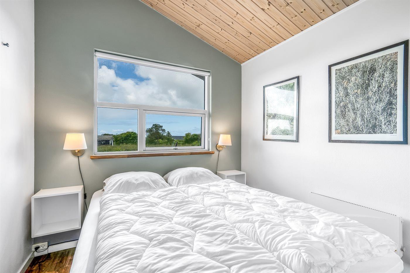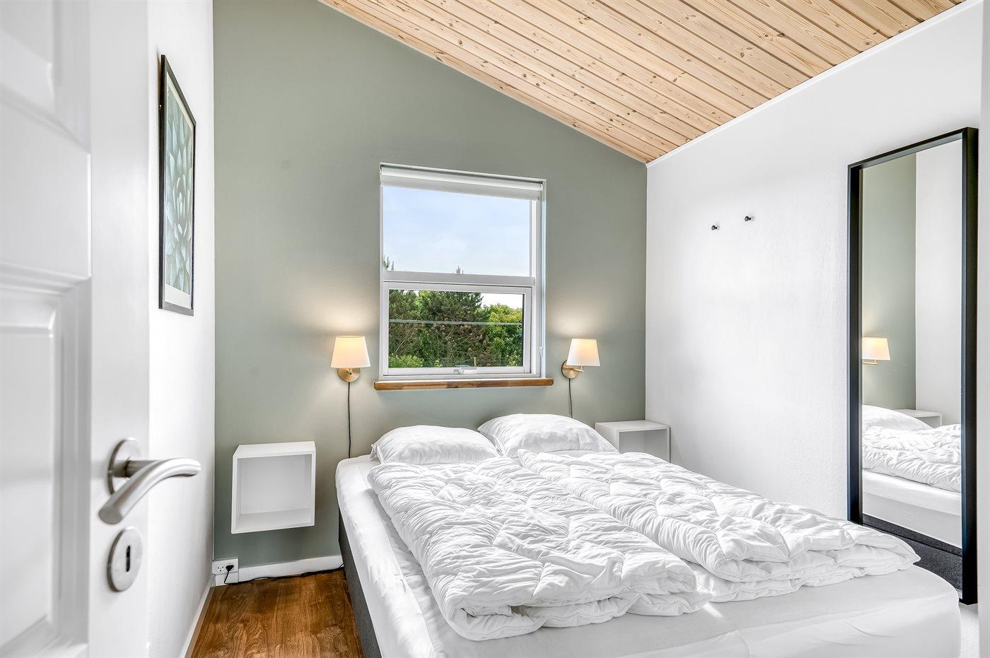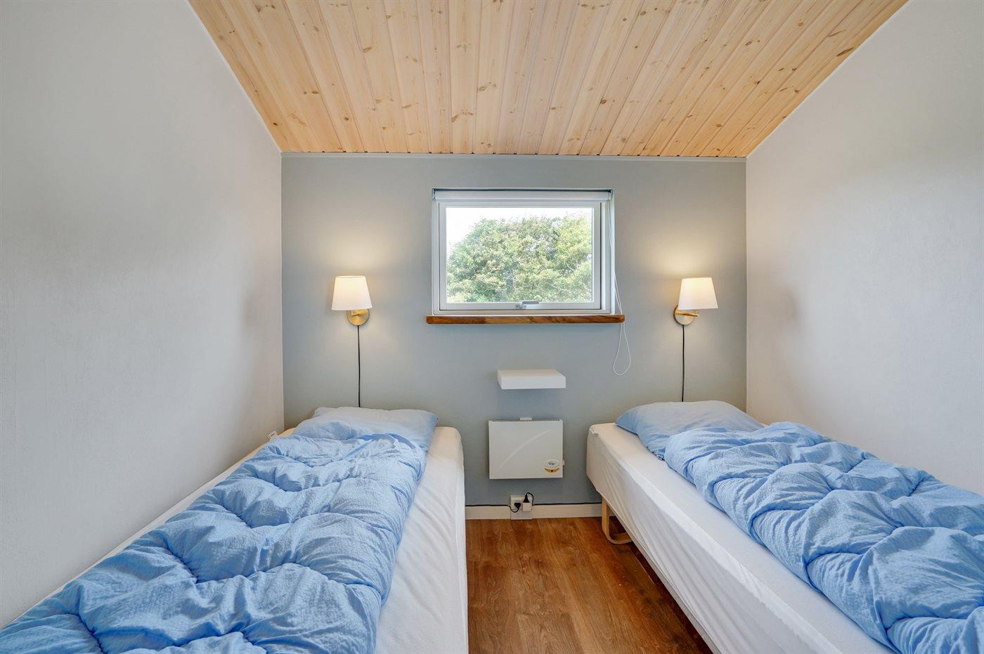 Der er i alt 3 soveværelser. Sovepladserne fordeler sig på: 4 sovepladser i dobbeltsenge. 2 sovepladser i enkeltsenge. Derudover er der 1 stk. barneseng.