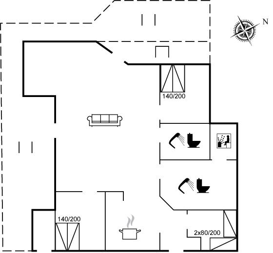Den tilhørende udendørs spa, er til rådighed i perioden fra påske til og med uge 42. Ingen udlejning til ungdomsgrupper, hvor alle er 15-25 år. Rygning ikke tilladt. Ved overtrædelse af forbuddet opkræves et gebyr på minimum DKK 3.000,-.