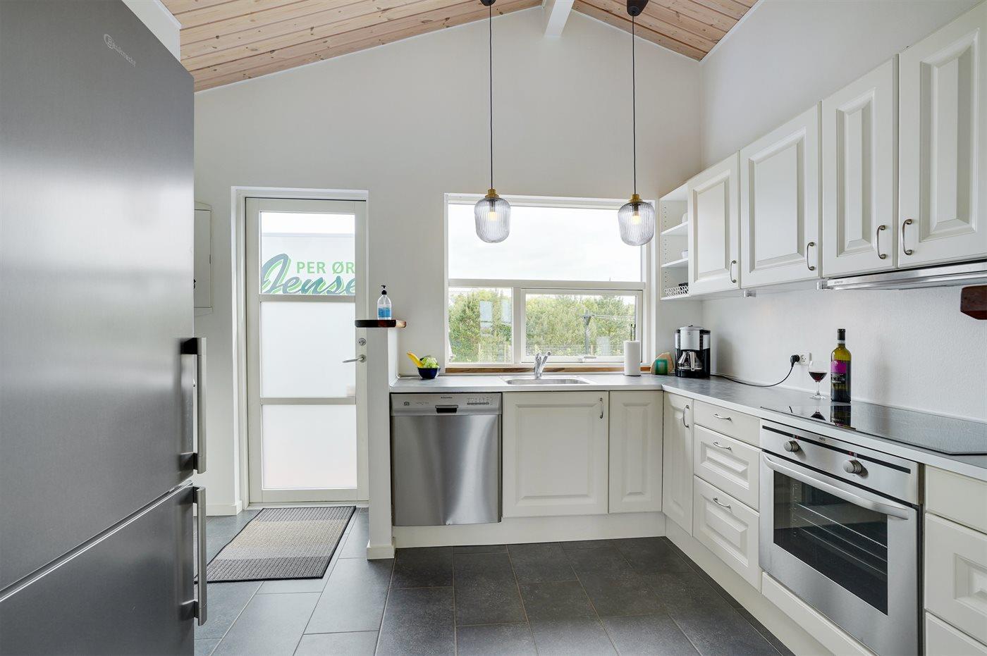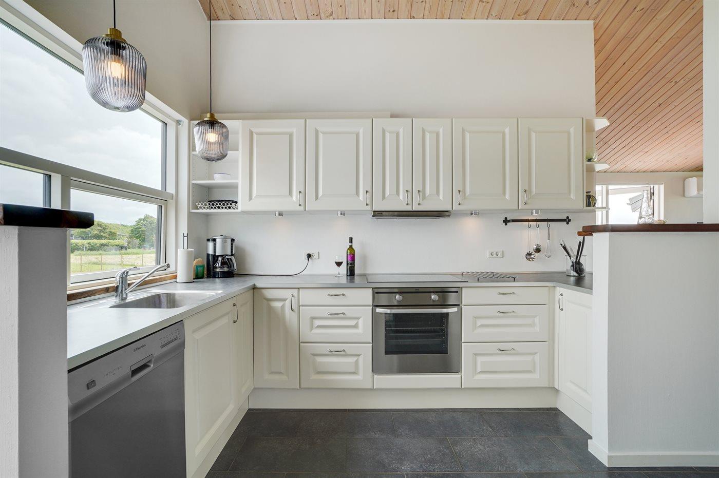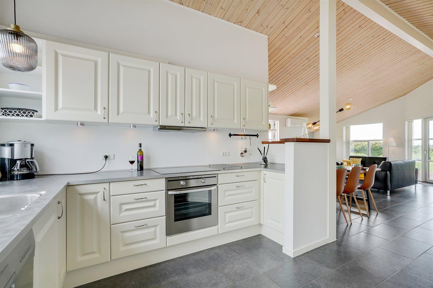 Køkkenet er udstyret med 1 køleskab. Der er 4 induktionskogeplader, varmluftovn, mikrobølgeovn samt opvaskemaskine.