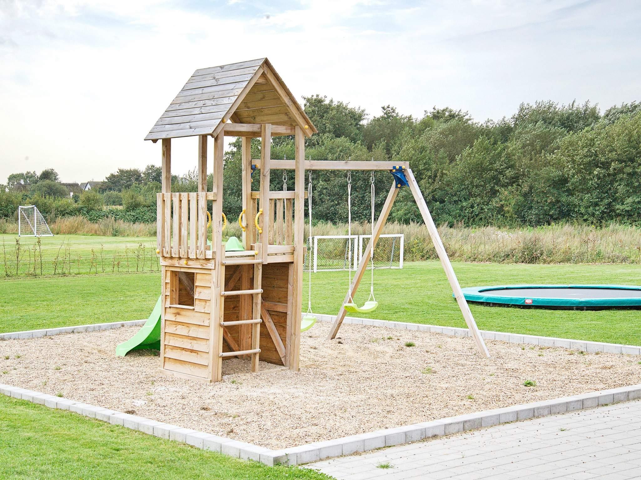Udendørs er der sandkasse og gynger til de mindste. Derudover er der en trampolin (brug af denne sker på lejers eget ansvar/forsikring). Stor, åben solterrasse og overdækket terrasse.