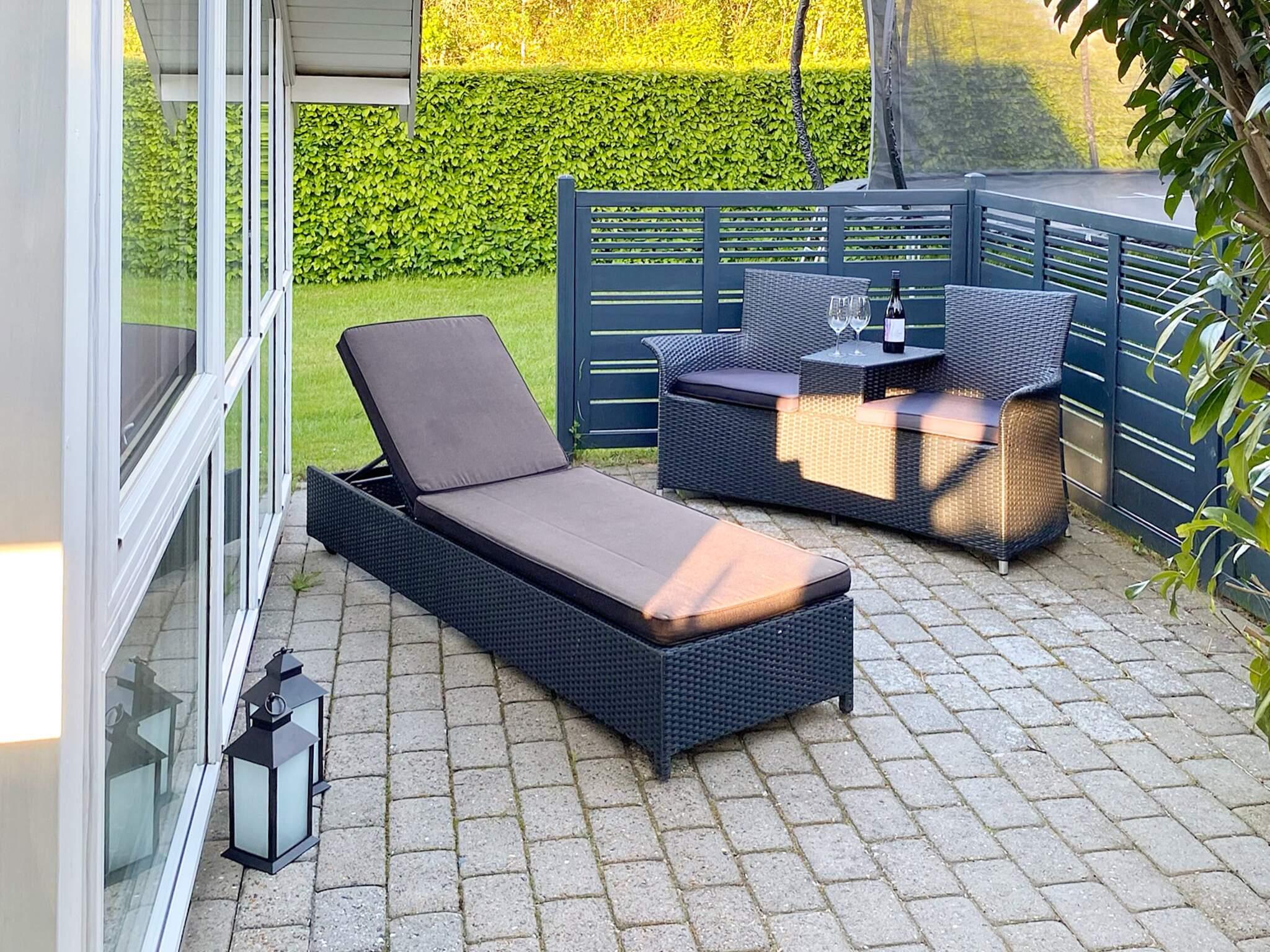 Huset har en hyggelig terrasse, hvor I kan slappe af og nyde udsigten over grunden. Der er en 10 m² åben terrasse og en 6 m² overdækket terrasse. Der er redskabsskur og grill.