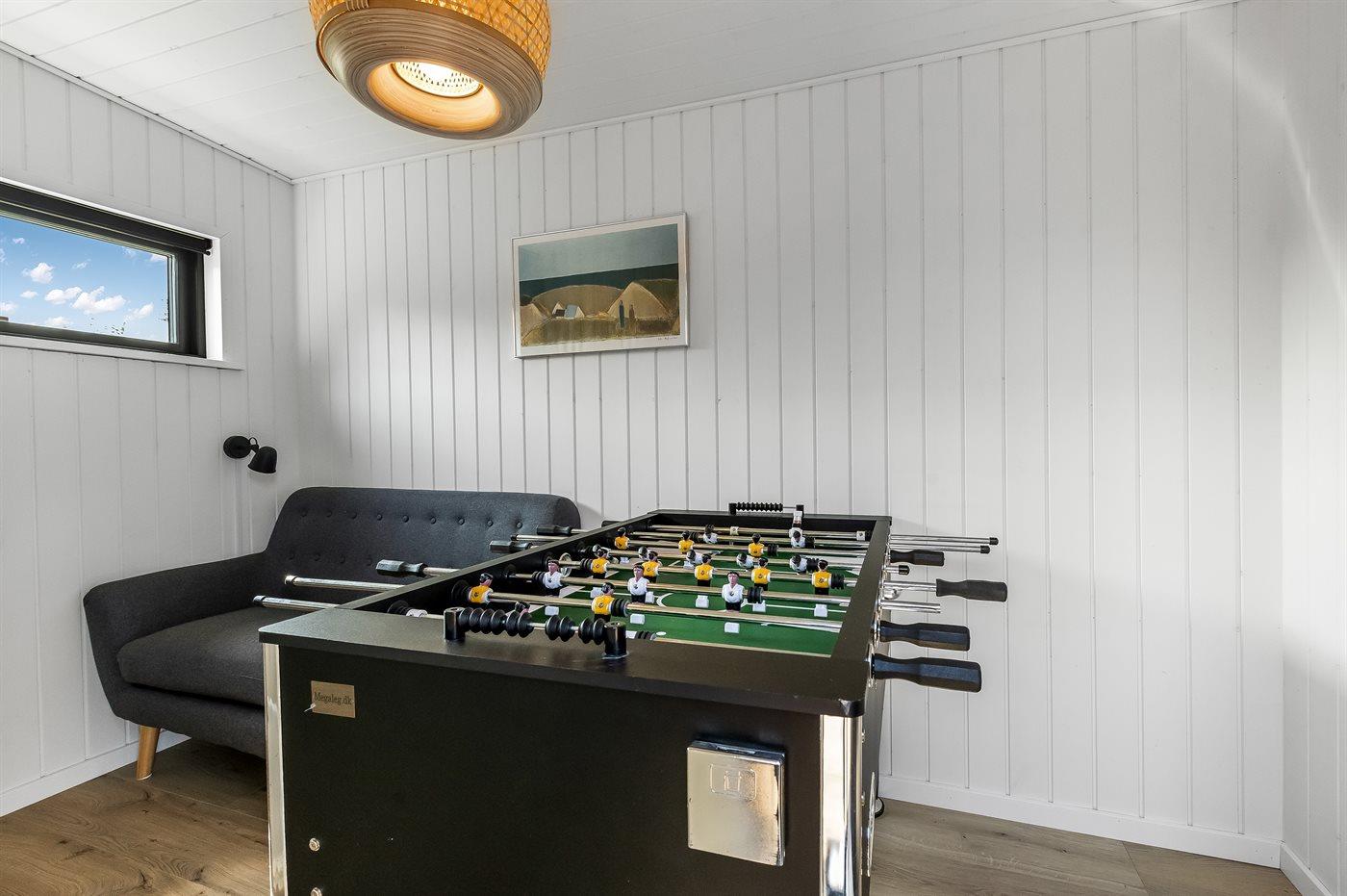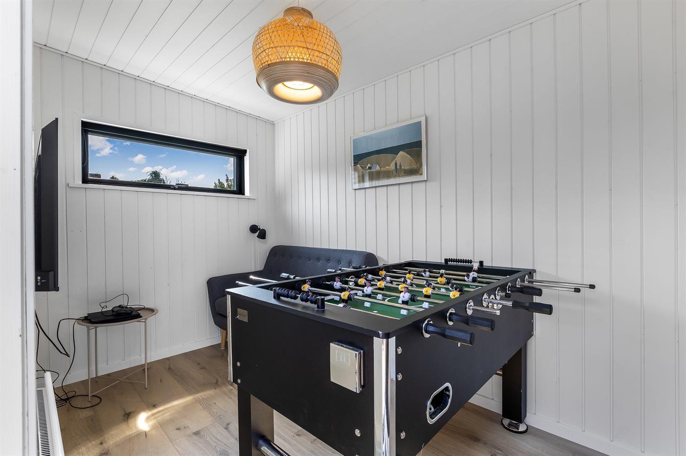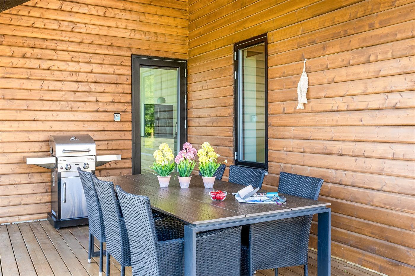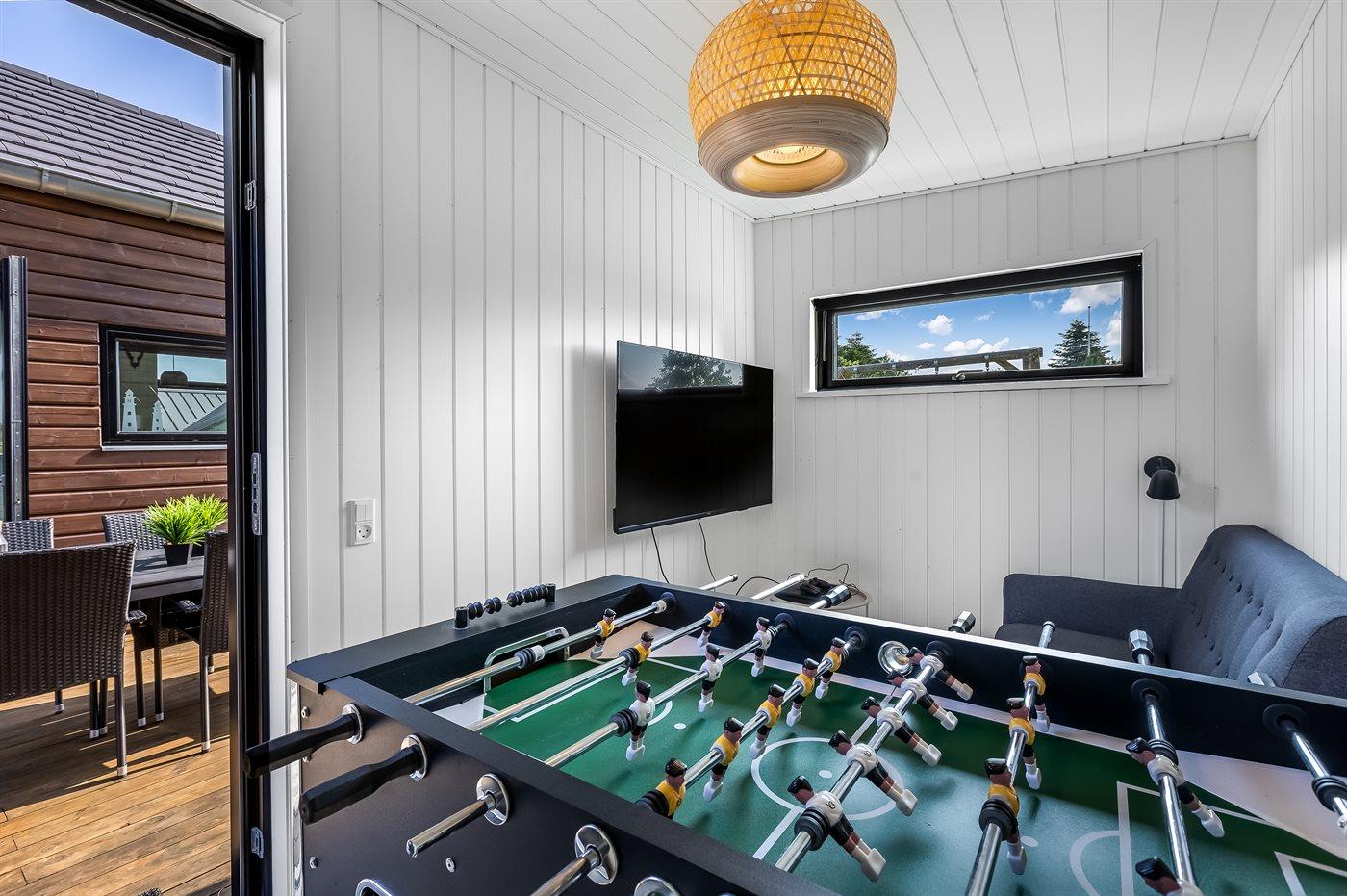 Ferieboligen er beliggende på en 1200 m² stor havegrund. Der er 400 m til havet. Nærmeste forretning er beliggende i en afstand af 2000 m. Der er en golfbane i en afstand af 6000 m. Til ferieboligen hører åbent og 18 m2 overdækket terrasseareal. Der er redskabsrum. Gynge. Sandkasse. Udendørs bruser. Grill til rådighed. Der er installeret stik til opladning af elbil. CEE stik. Parkering ved ferieboligen.
