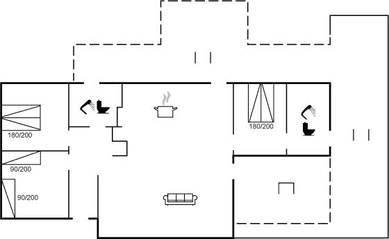 Der er i alt 3 soveværelser. Sovepladserne fordeler sig på: 4 sovepladser i dobbeltsenge. 2 sovepladser i enkeltsenge. Derudover er der 1 stk. barneseng.