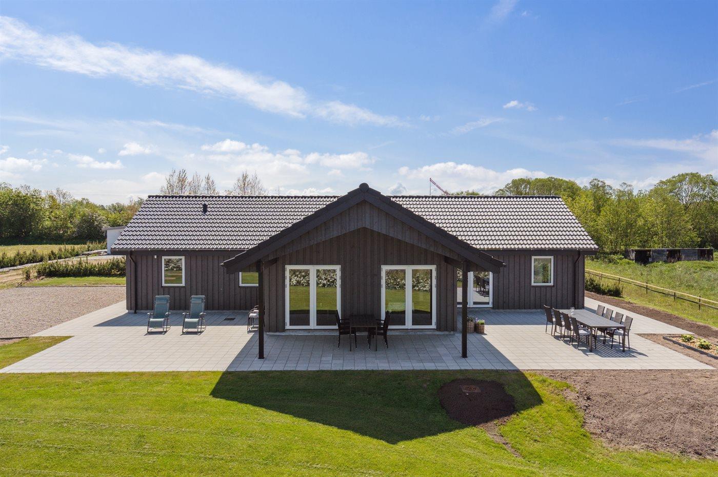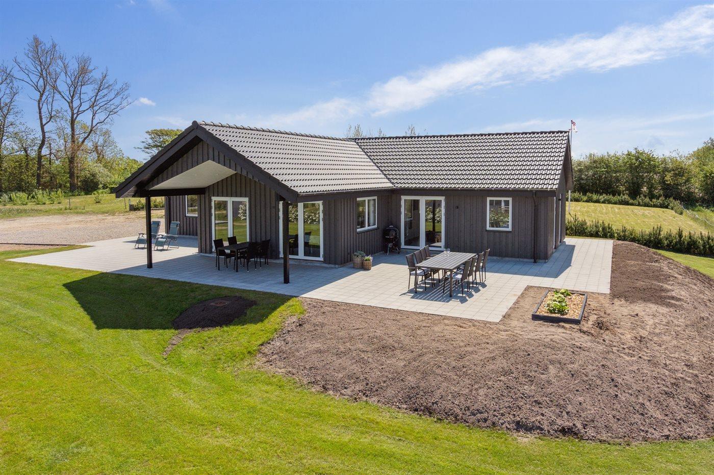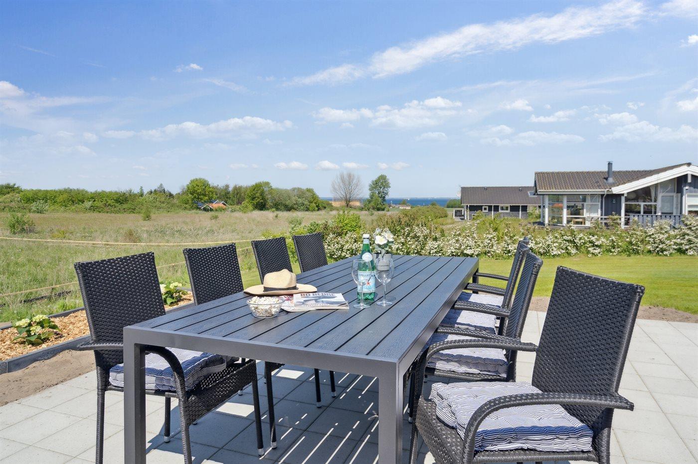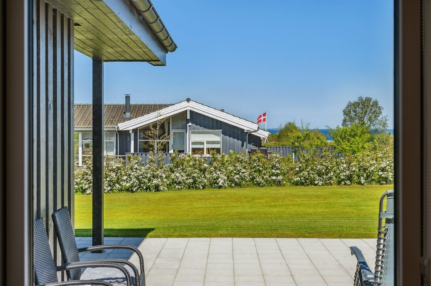 Ferieboligen er beliggende på en 1300 m² stor naturgrund. Der er 450 m til havet. Der er en badebro i nærheden. Nærmeste forretning er beliggende i en afstand af 2000 m. Til ferieboligen hører åbent terrasseareal. Desuden er der overdækket terrasse. Gynge. Sandkasse. Rutchebane. Fodboldmål. Grill til rådighed. Der er installeret stik til opladning af elbil. Type 2 stik. Med 11 kW ladeeffekt. Parkering ved ferieboligen.