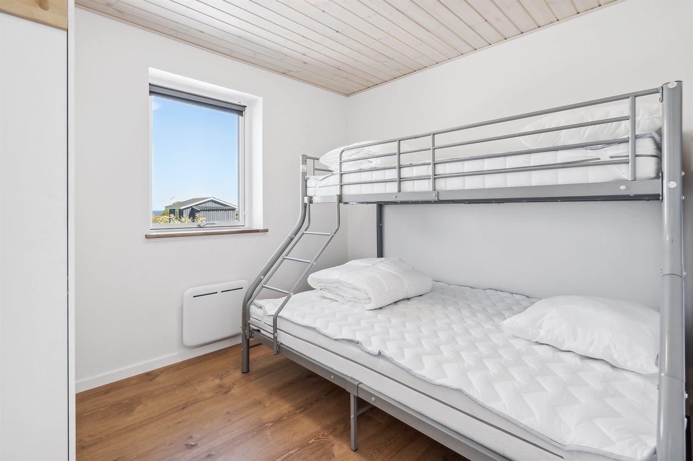 Der er i alt 5 soveværelser. Sovepladserne fordeler sig på: 6 sovepladser i dobbeltsenge. 2 sovepladser i enkeltsenge. 2 sovepladser i køjeseng. Derudover er der 1 stk. barneseng.