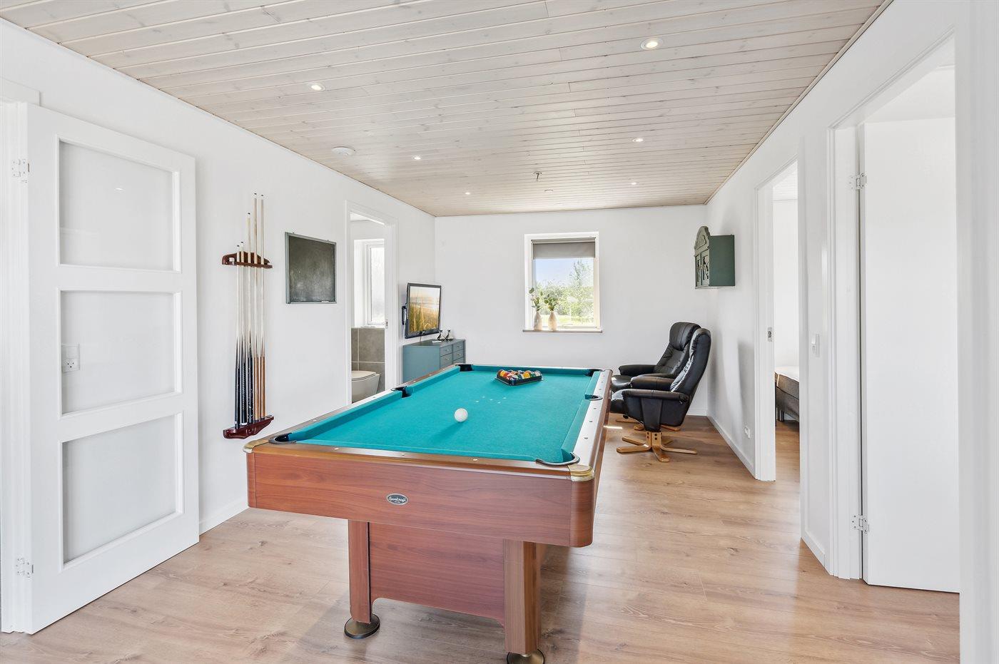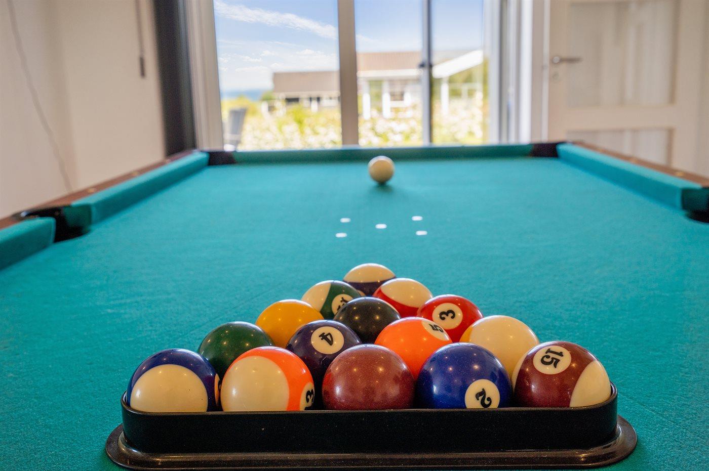 Moderne sommerhus ved sandstrand med aktivitetsrum