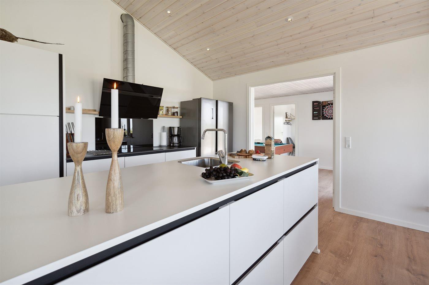 Køkkenet er udstyret med 1 køleskab. Der er 4 induktionskogeplader, varmluftovn, mikrobølgeovn samt opvaskemaskine.