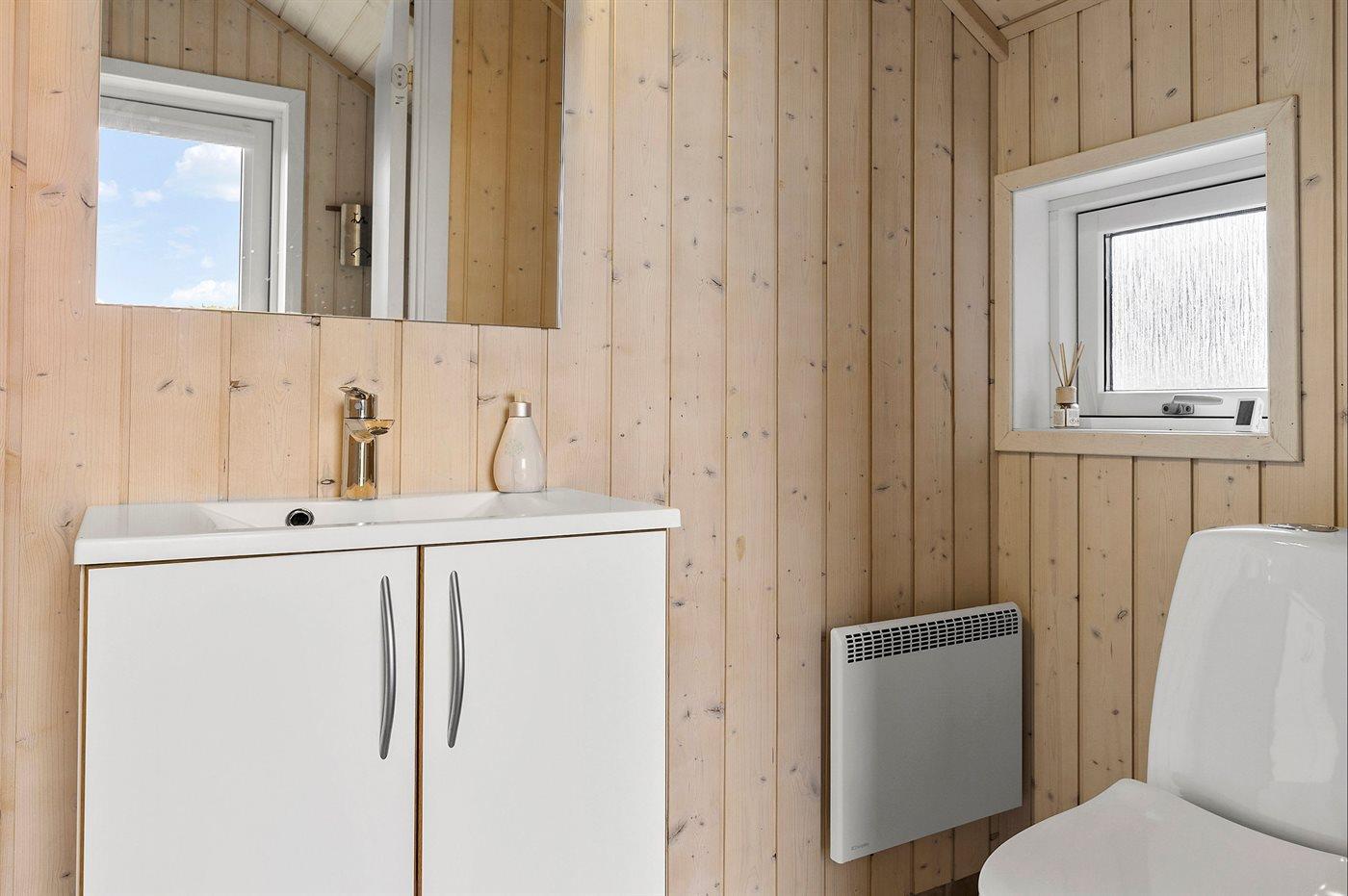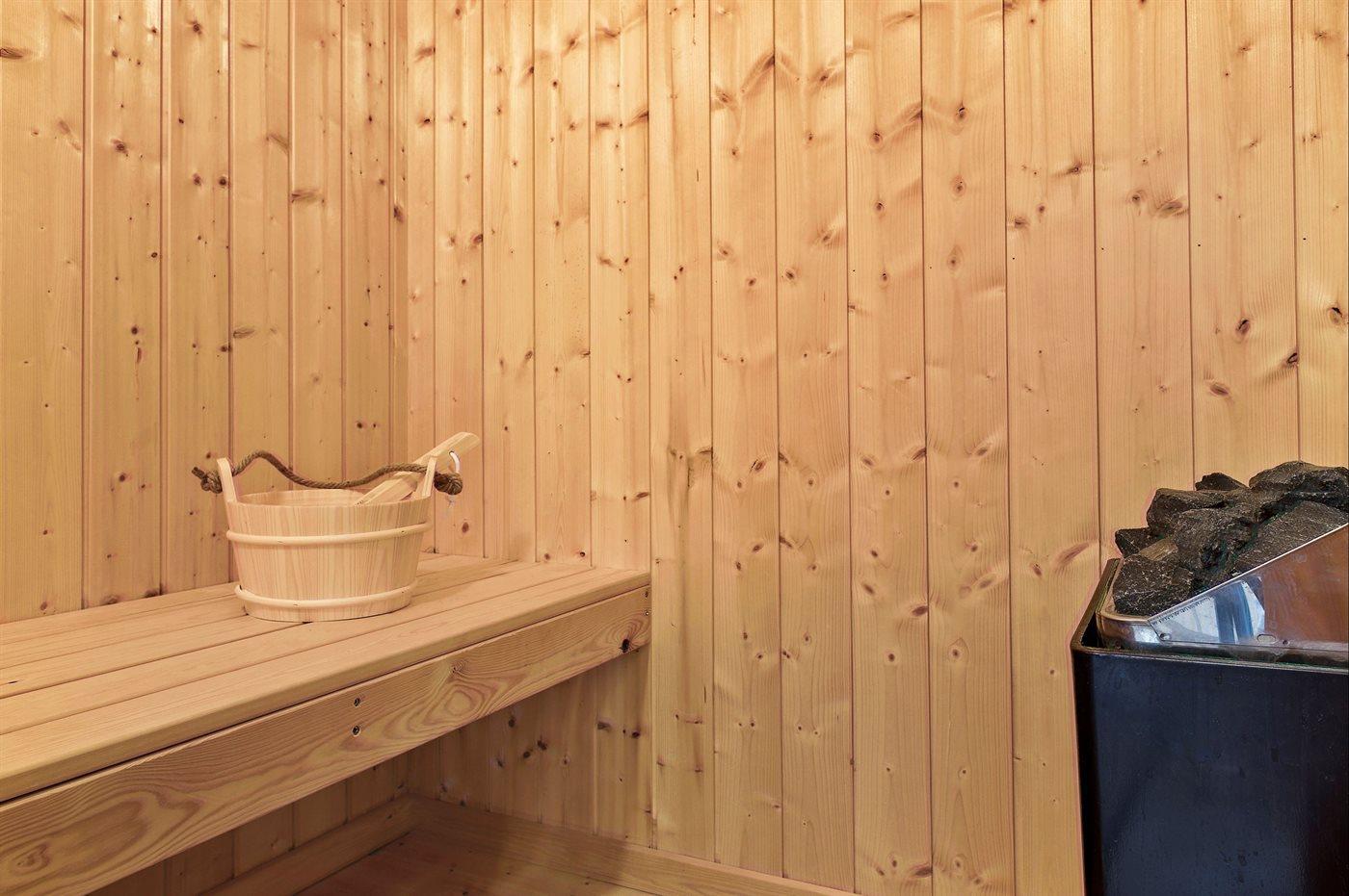 Der er 1 badeværelse med bruseniche og 2 toiletter, heraf 1 gæstetoilet. Der er gulvvarme på 1 badeværelse. I saunaen er der mulighed for afslapning.
