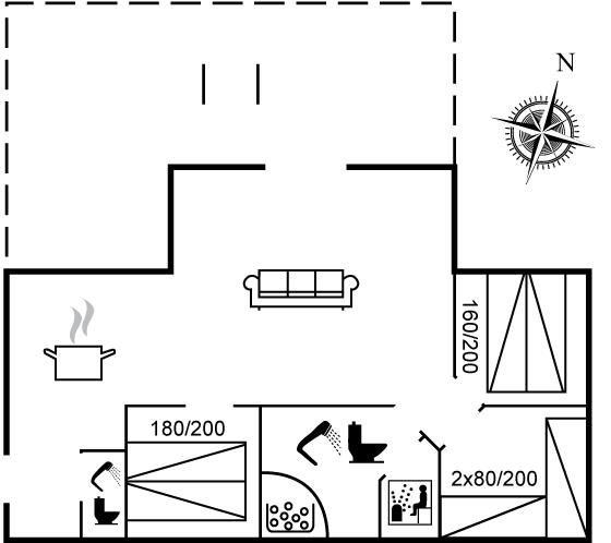Der er i alt 3 soveværelser. Sovepladserne fordeler sig på: 4 sovepladser i dobbeltsenge. 2 sovepladser i enkeltsenge. Derudover er der 1 stk. barneseng.