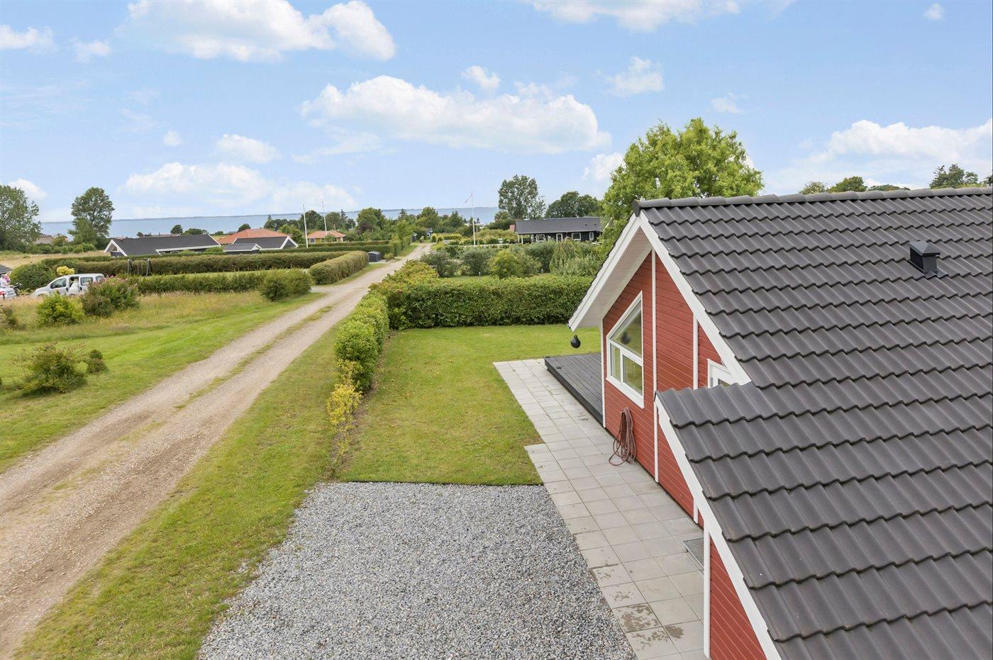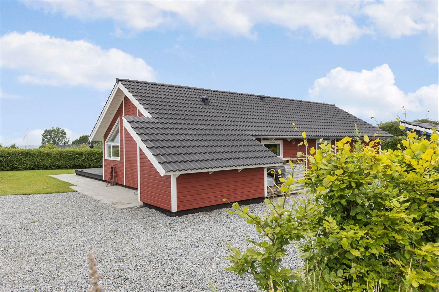 Ferieboligen er beliggende på en 1300 m² stor havegrund. Der er 300 m til havet. Der er en badebro i nærheden. Nærmeste forretning er beliggende i en afstand af 3000 m. Der er en golfbane i en afstand af 7000 m. Til ferieboligen hører åbent terrasseareal. Desuden er der overdækket terrasse. Grill til rådighed. Der er installeret stik til opladning af elbil. Type 2 stik. Med 11 kW ladeeffekt. Parkering ved ferieboligen.