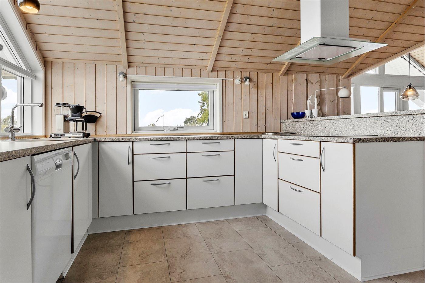 Køkkenet er udstyret med 1 køleskab. Der er 4 keramiske kogeplader, varmluftovn, mikrobølgeovn samt opvaskemaskine.