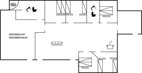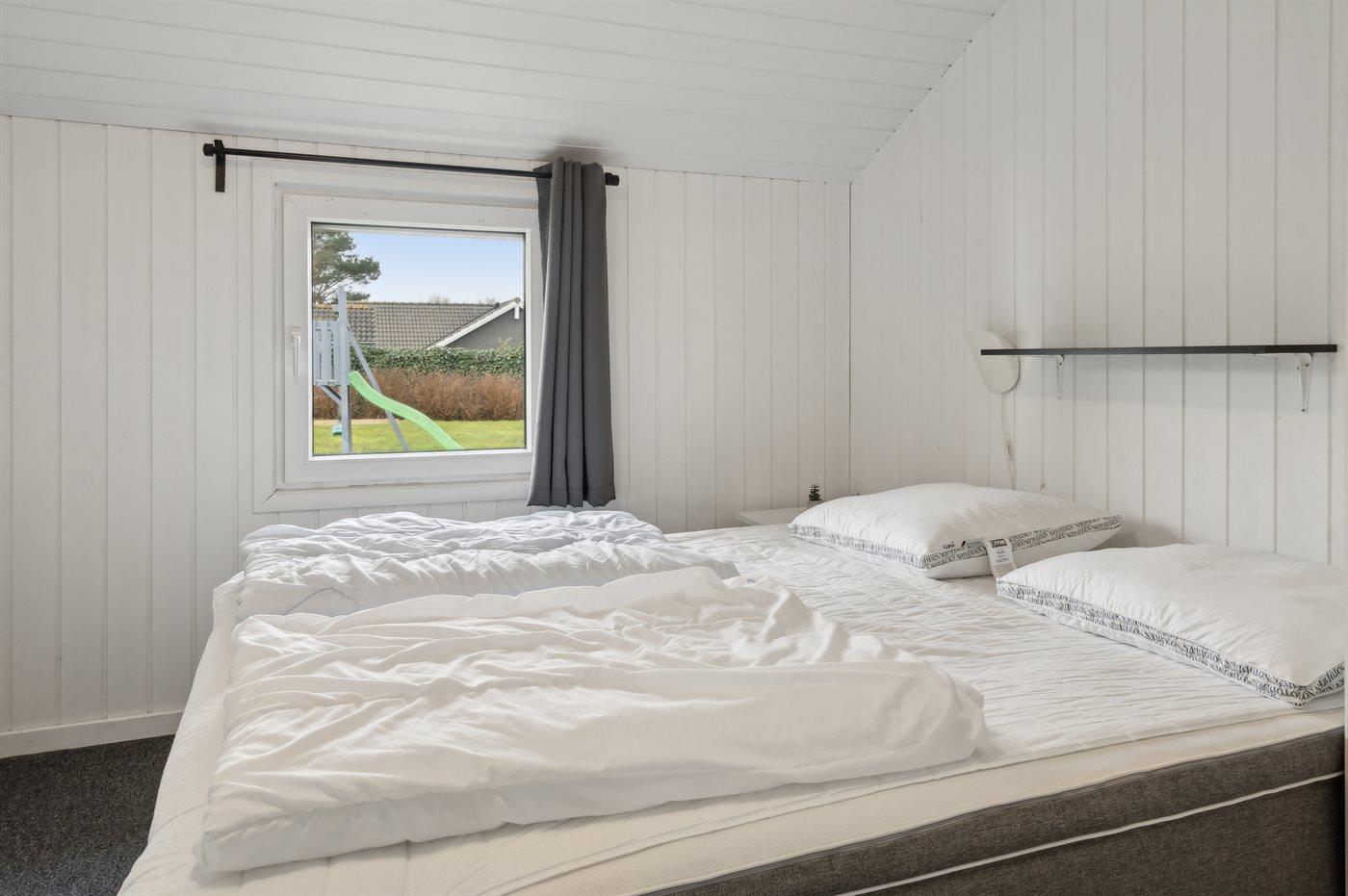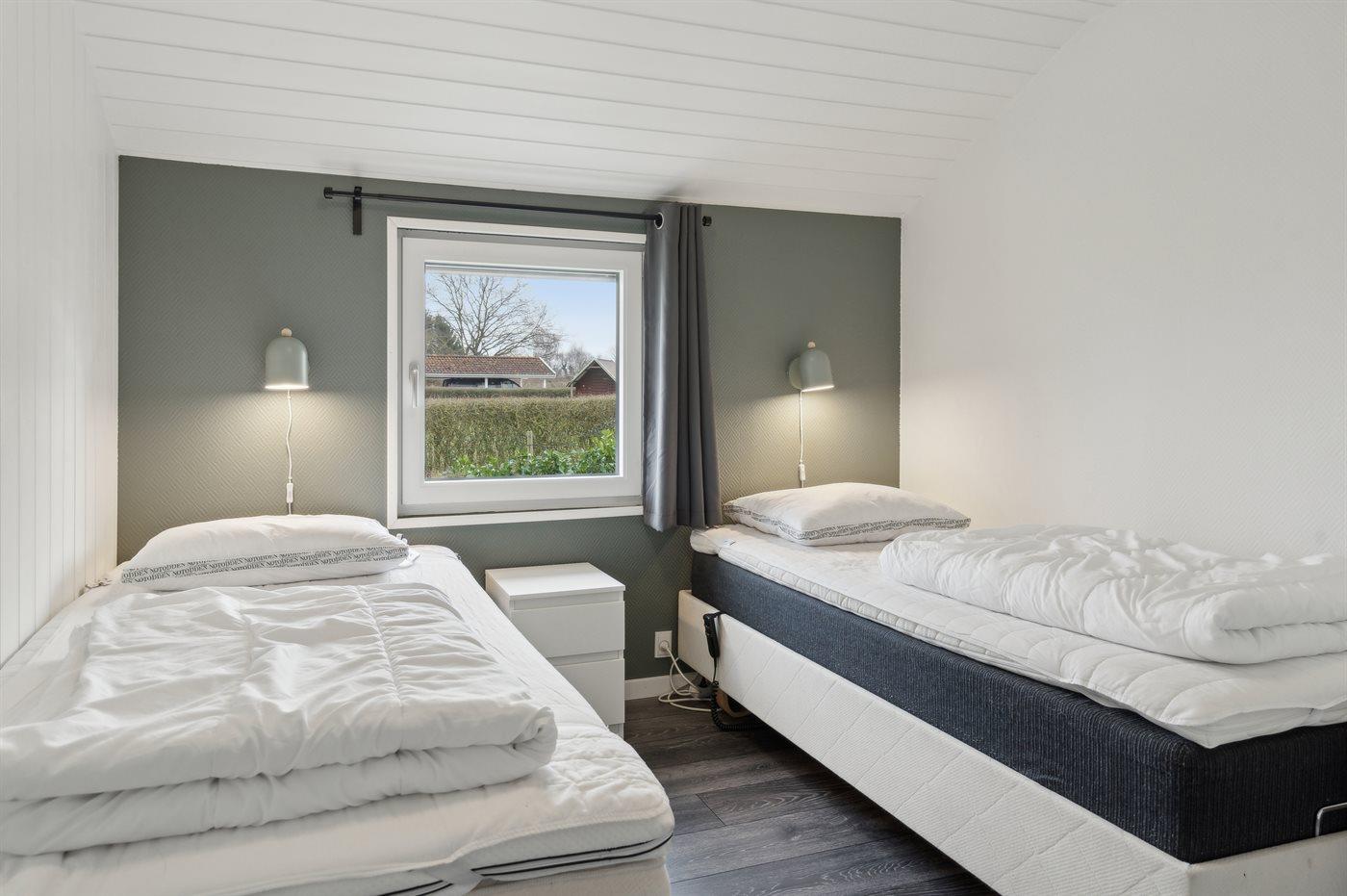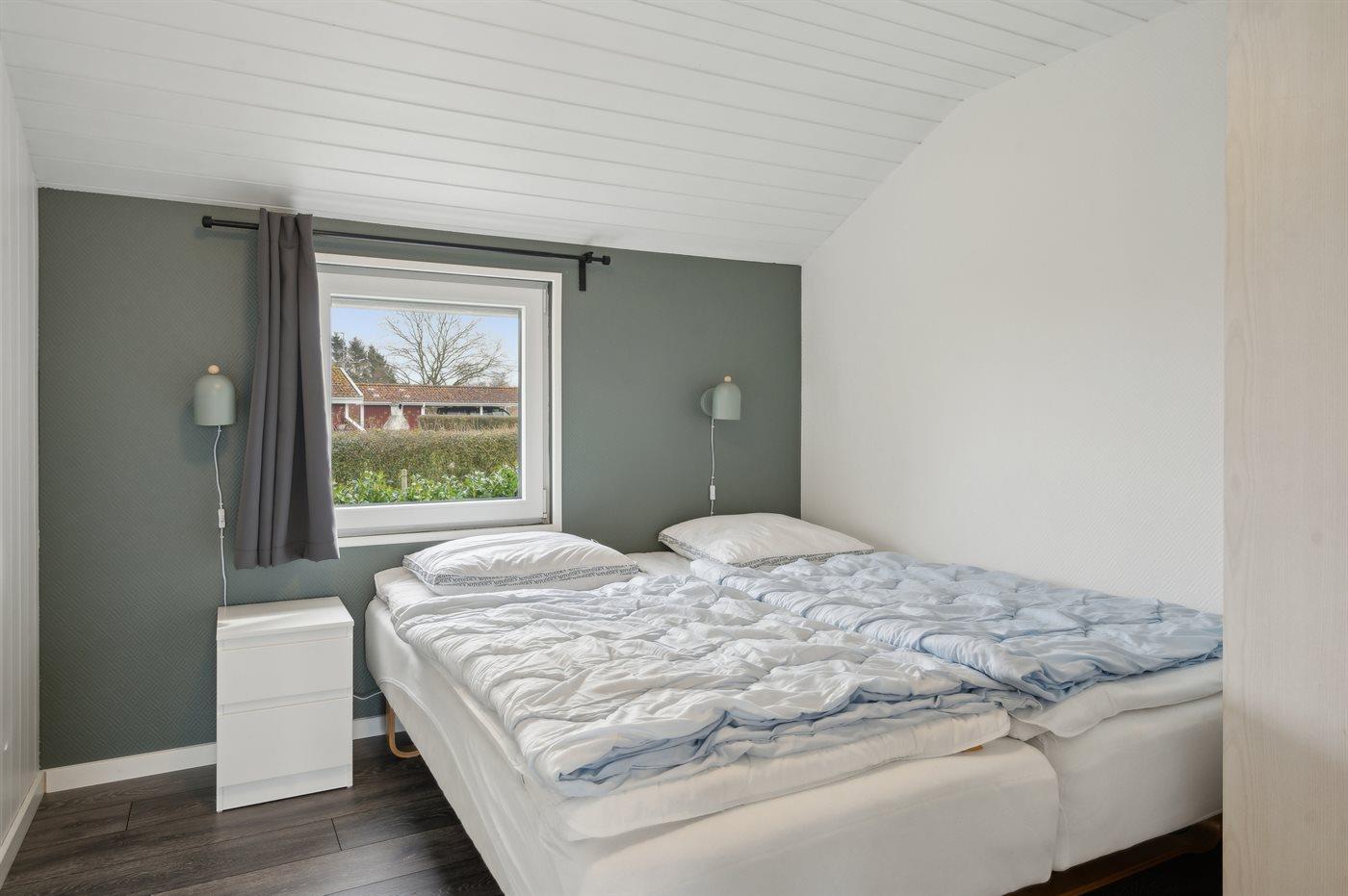 Der er i alt 5 soveværelser. Sovepladserne fordeler sig på: 4 sovepladser i dobbeltsenge. 6 sovepladser i enkeltsenge. Derudover er der 1 stk. barneseng.