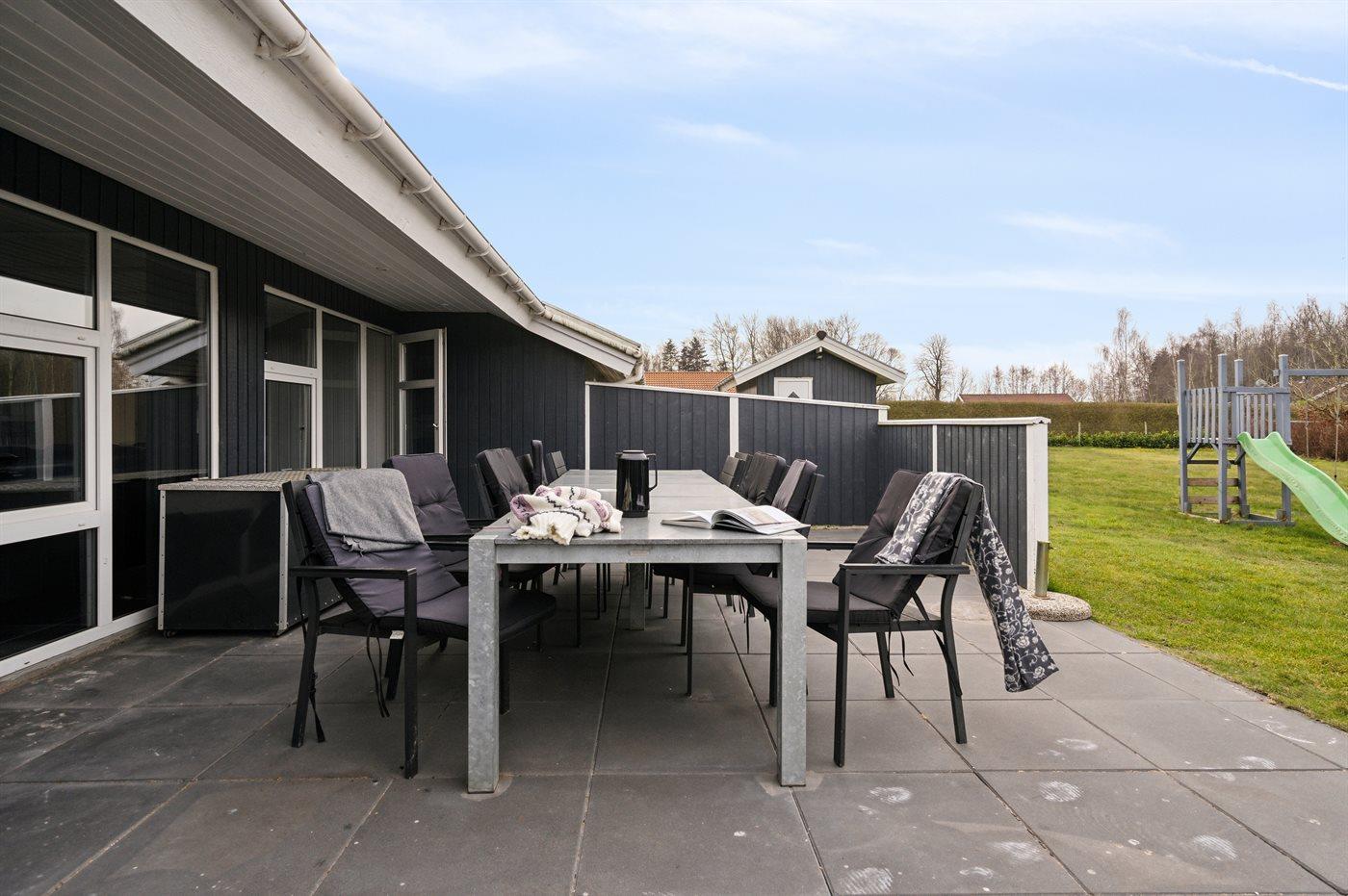 Skønt aktivitetshus beliggende på stor grund tæt på dejlig badestrand.