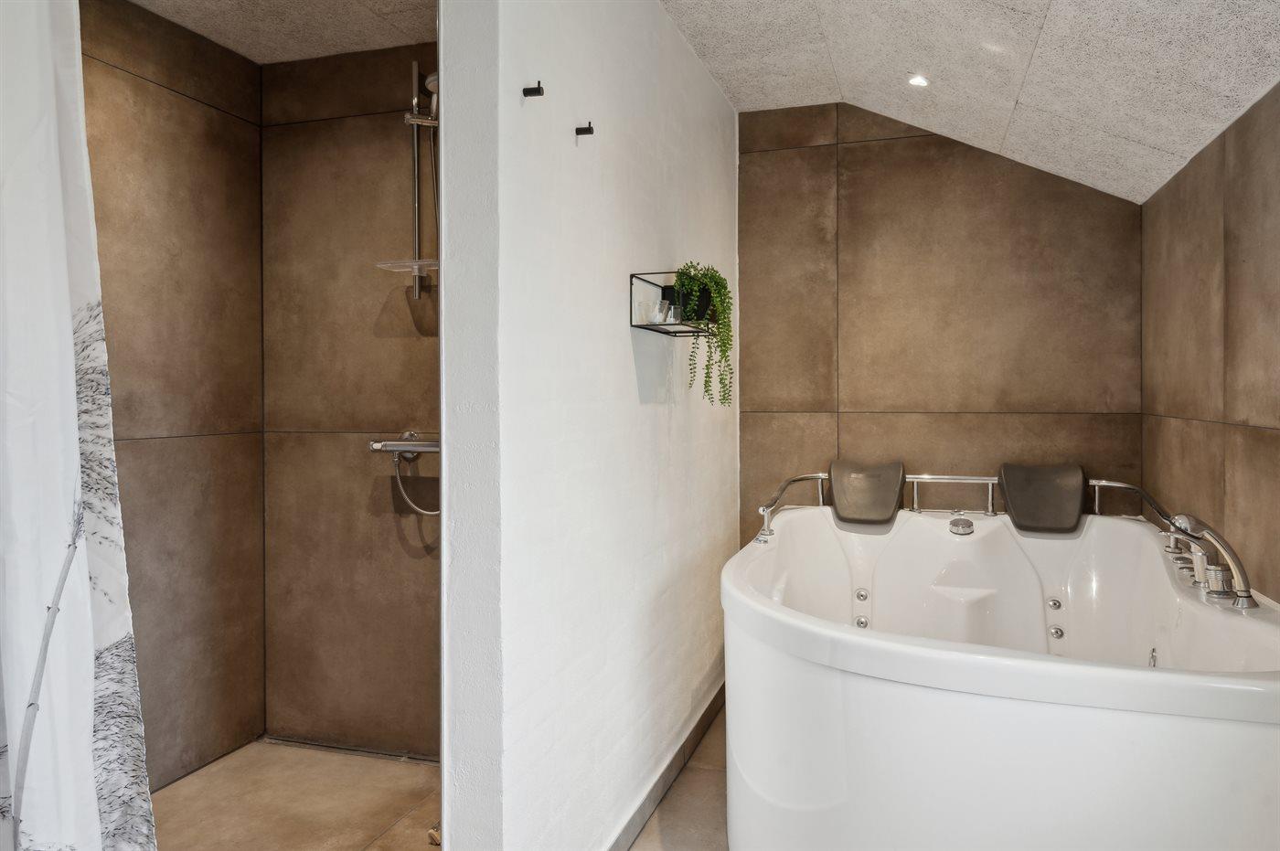 Der er 2 badeværelser med bruseniche og 2 toiletter. Der er gulvvarme på 2 badeværelser.