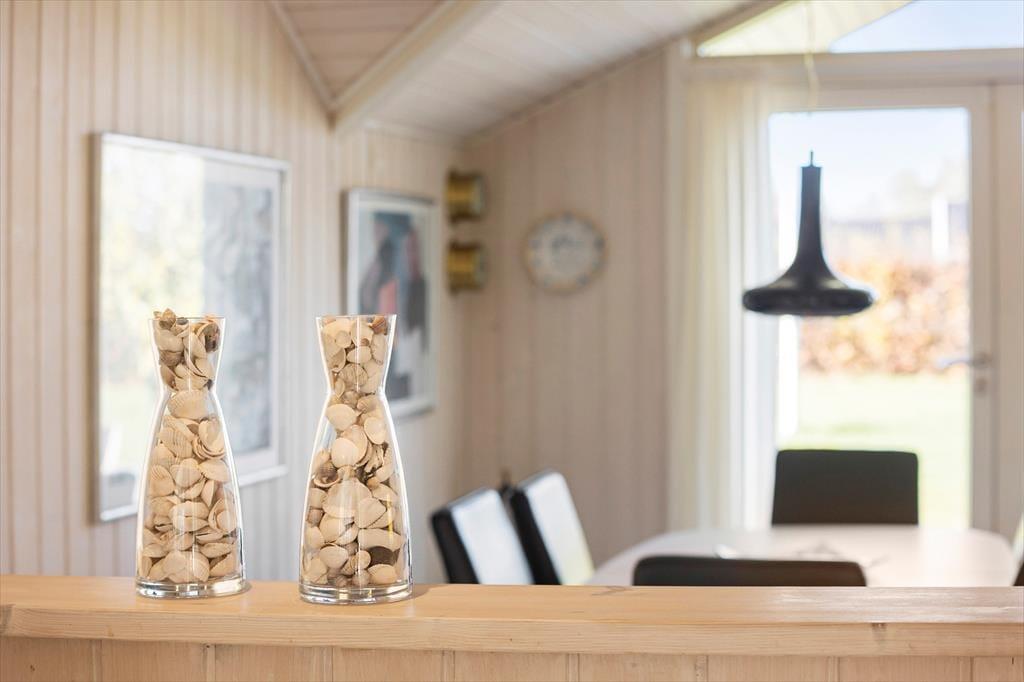 Når du træder ind i sommerhuset, bliver du mødt af lyse og venlige rum, der straks inviterer til afslapning og fællesskab. Huset er velholdt og moderne indrettet med fokus på komfort, og det åbne køkken-alrum danner rammen om hyggelige måltider og lange samtaler. Stuen har en indbydende sofaafdeling, hvor I kan samles til en god film eller med en god bog. For de mere aktive feriestunder er der et aktivitetsrum med sjove muligheder for både børn og voksne – perfekt til et spil bordfodbold eller dart, når vejret kalder på indendørs hygge.