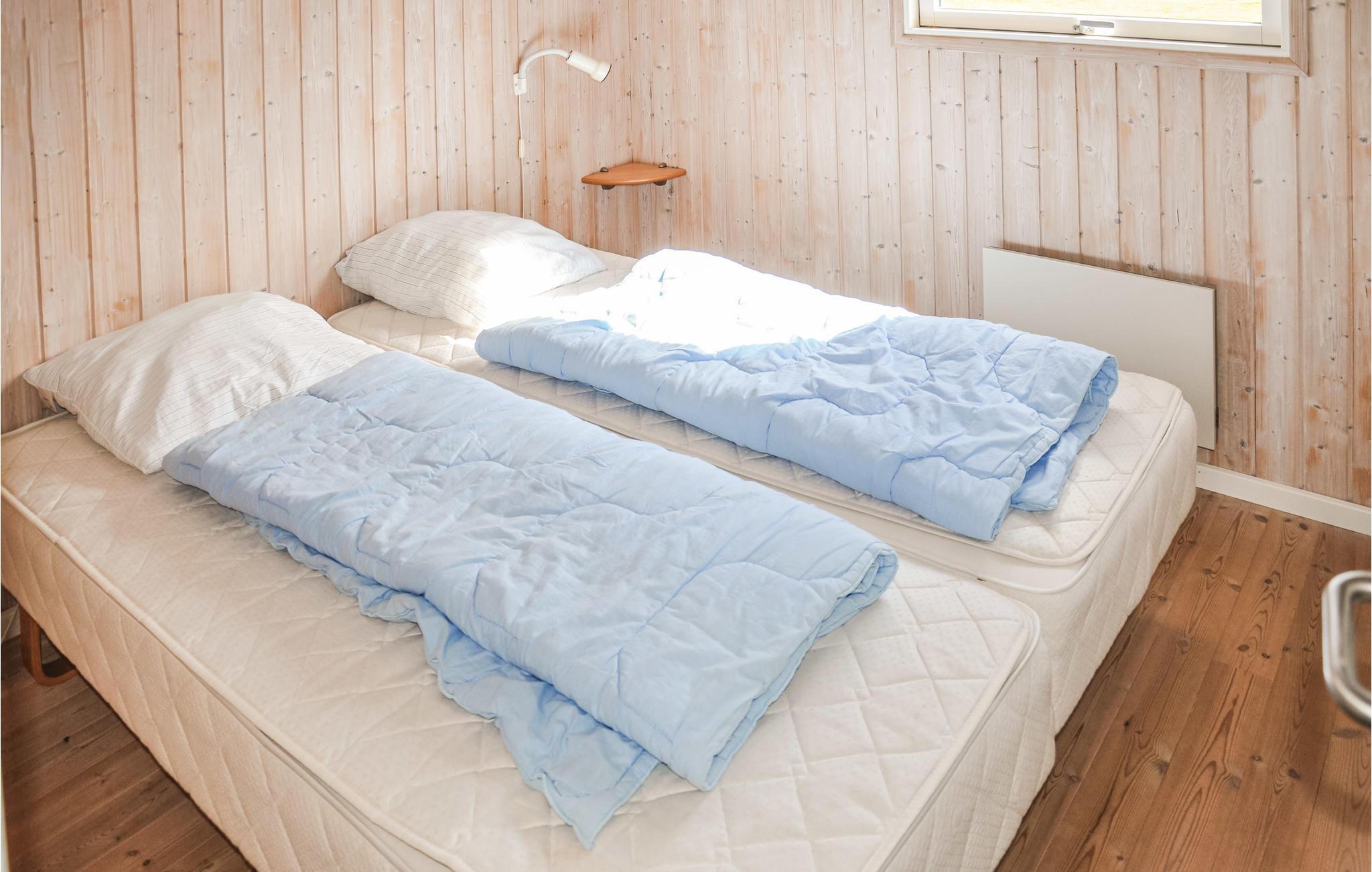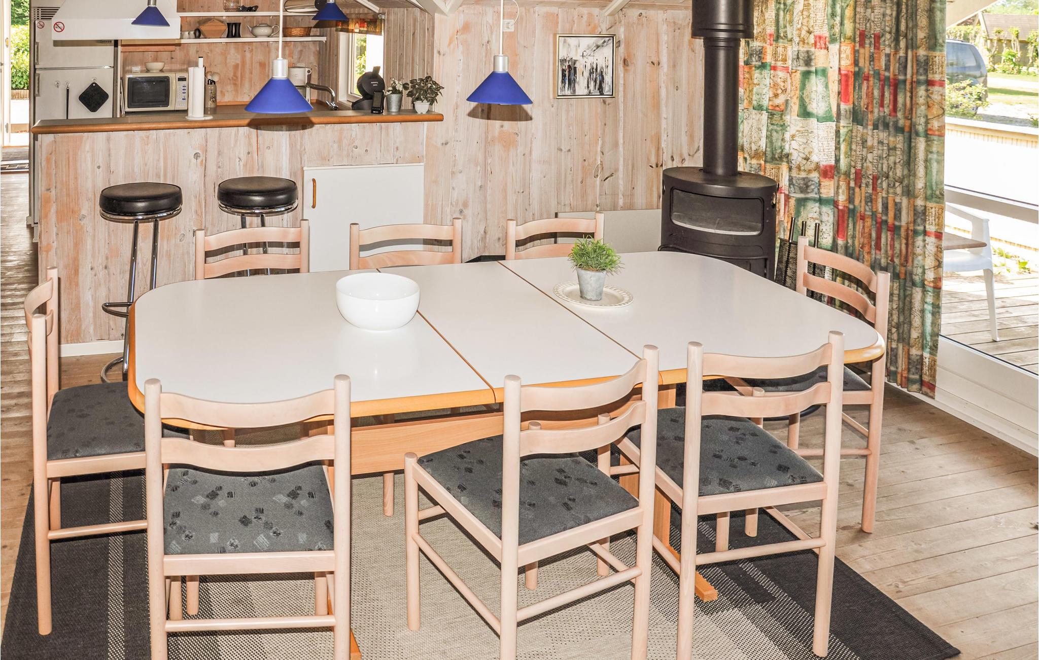 Dette dejlige feriehus af træ er særdeles velholdt og dejligt indrettet. Der er trægulv overalt og huset fremstår meget lyst og venligt. På de gode terrasser mod syd og vest kan I nyde solen og hygge jer omkring grillen. Her kan I også nyde et glimt af havet. Køkken og stue er let adskilt af en hjemmebar, så sæt jer på barstolene og nyd en drink, mens I laver mad. Badeværelset byder på velvære med både spa og sauna. Vaskemaskine og tørretumbler står i entréen.