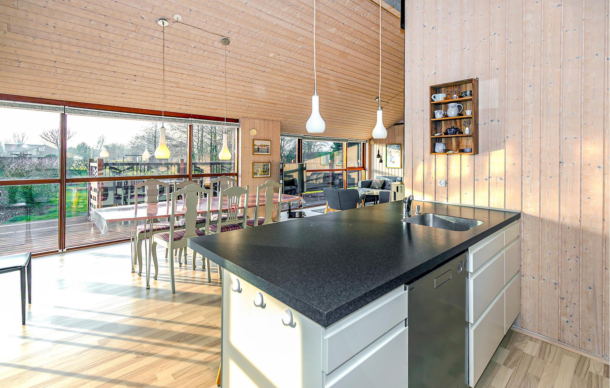 Der er kun nogle få minutters gang til en forrygende strand og kort afstand til Nordborg Resort fra dette dejlige sommerhus. Sommerhuset ligger i et roligt område og står med sin behagelige indretning klar til at danne rammerne om et skønt ophold. Husets centrum er køkkenalrummet, hvor loftet går til kip, og de høje vinduespartier giver en fornemmelse af at være ét med omgivelserne. Den store hems indbyder både til afslapning og leg - byg en hule eller læn jer tilbage med en god bog fra husets bibliotek. Efter en lang dag på farten er det rart at nyde en stille stund i spabadet.